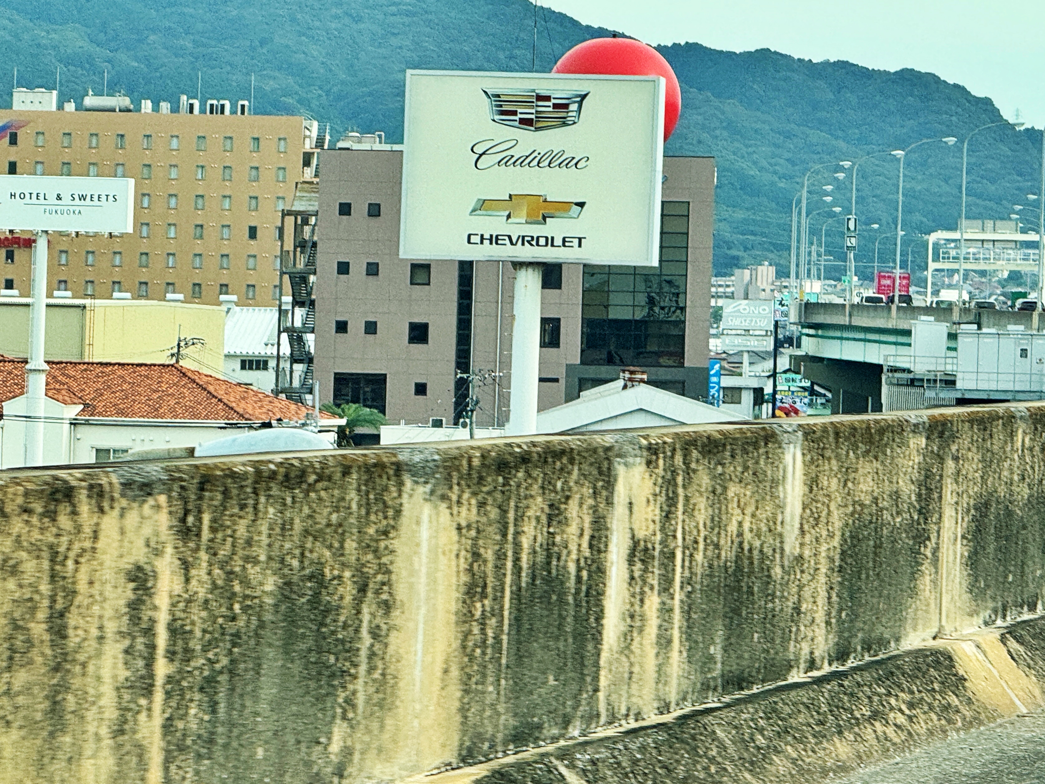 이 고가 아래에 다자이후로 빠지는 방향으로 쉐보레 딜러샵 겸 수리점이 있습니다.