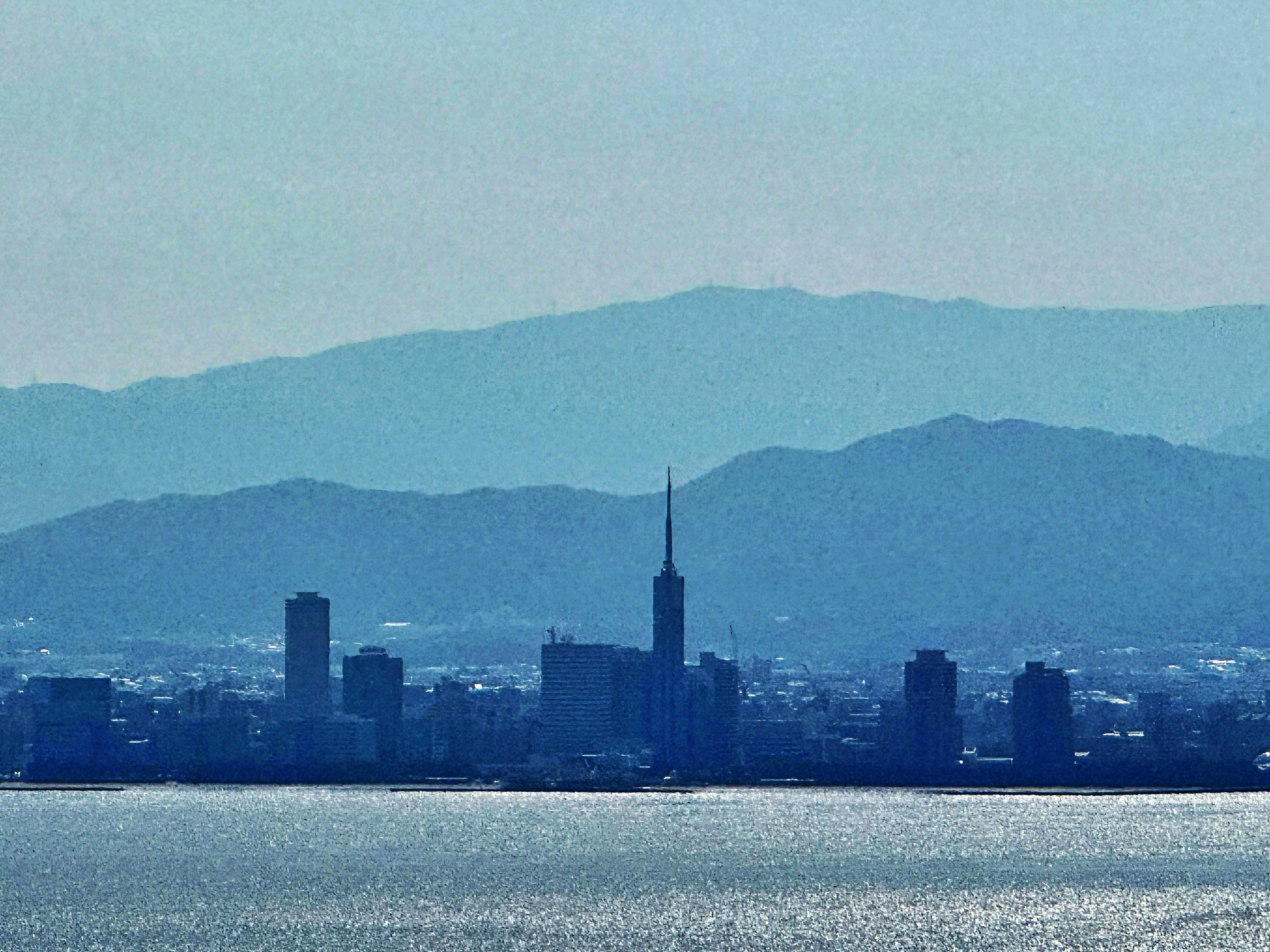 조금 흐리긴 하지만 후쿠오카 도심 방면으로 봤을 때 어지간한 랜드마크들은 다 보이더군요.