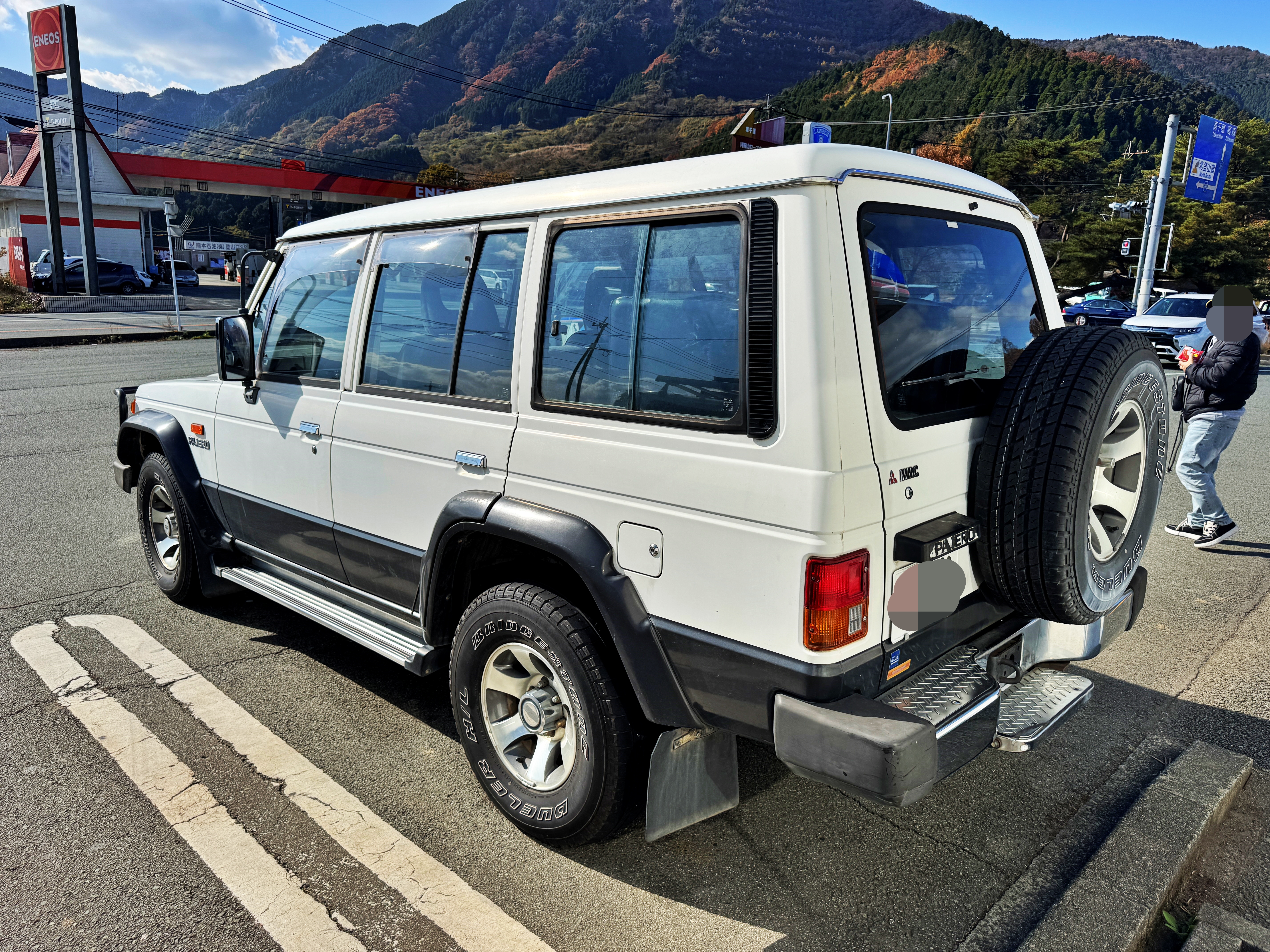 순정 휠에 순정 가니쉬. 한국에서는 뉴갤로퍼에 이 디자인의 휠이 적용되었는데, 1세대 파제로가 현행모델이던 시절에는 이 휠과 구형 갤로퍼의 해바라기 휠이 트림에 따라 함께 적용되었습니다.