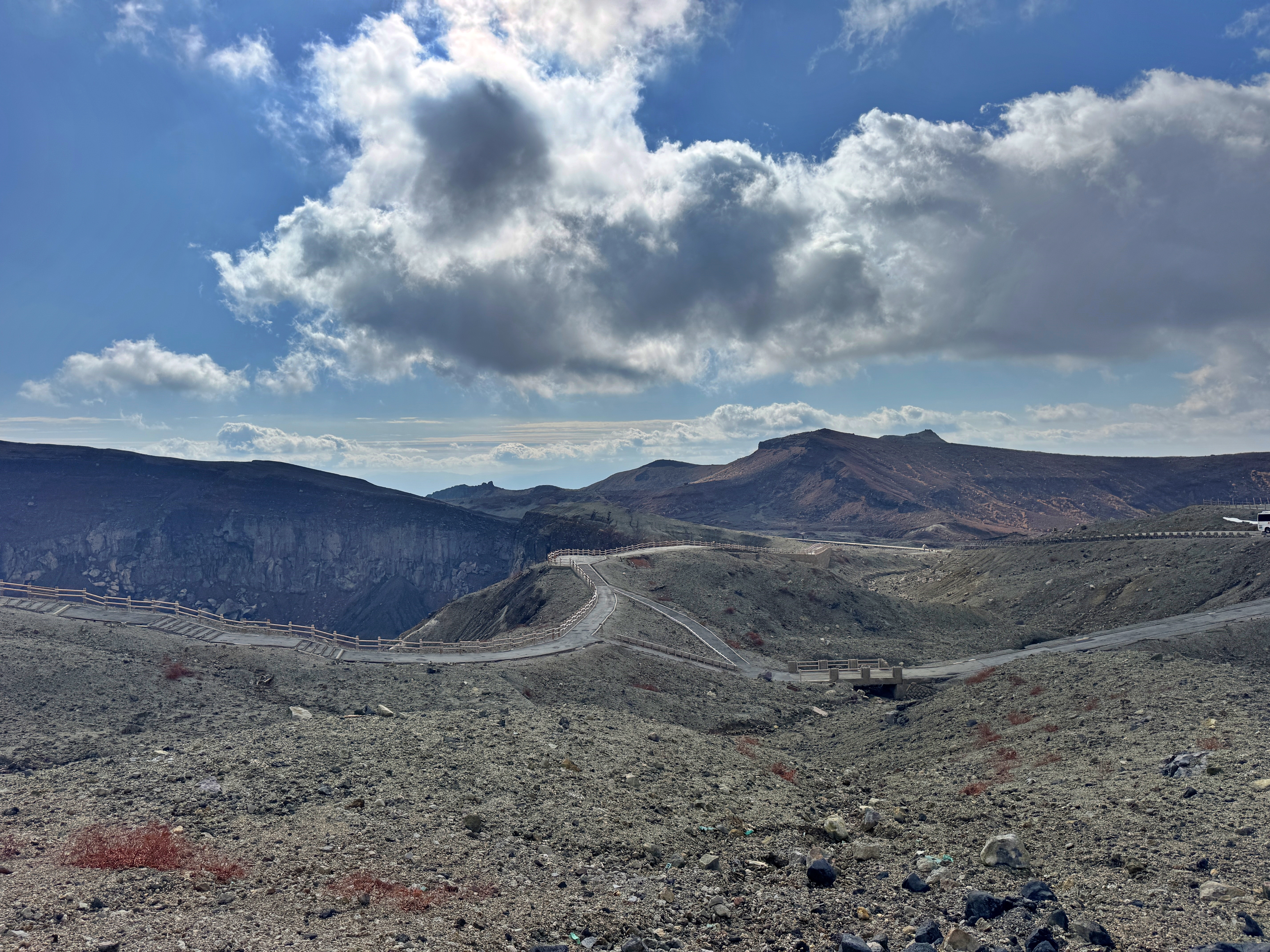 이날은 나카타케 화구에서 수증기가 엄청 나오더군요. 그래서 뭉게구름이 좀 있었습니다. 헬리콥터를 타고 화구 근처를 도는 투어가 있다고 해서 그것도 알아봤으나...