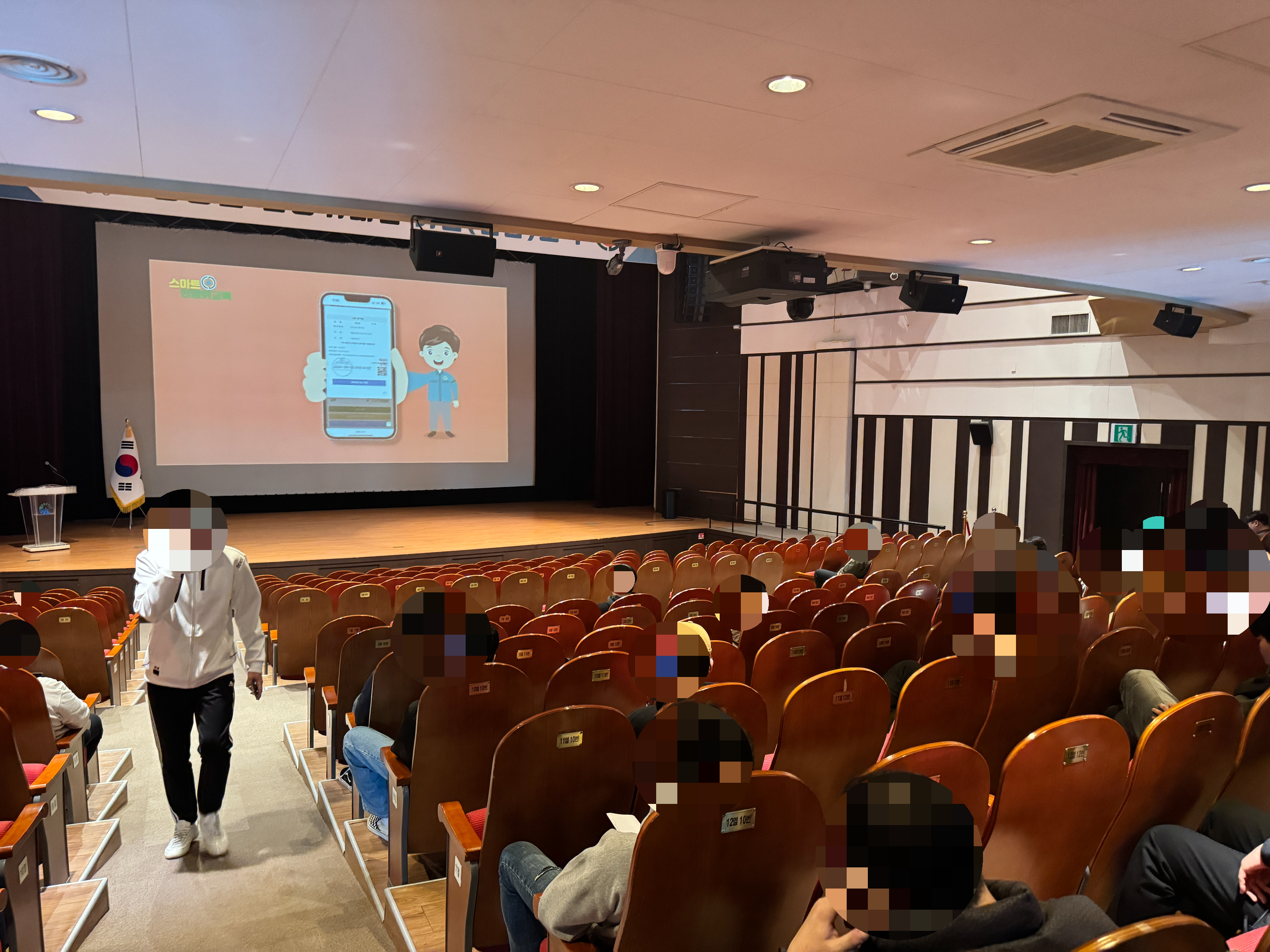 어중간하게 온 저는 중간쪽에 앉았네요. 결국 늦게 온 사람들은 앞쪽 자리에 앉았고 그렇게 적당히 자리가 채워진 상태로 교육이 시작됩니다.