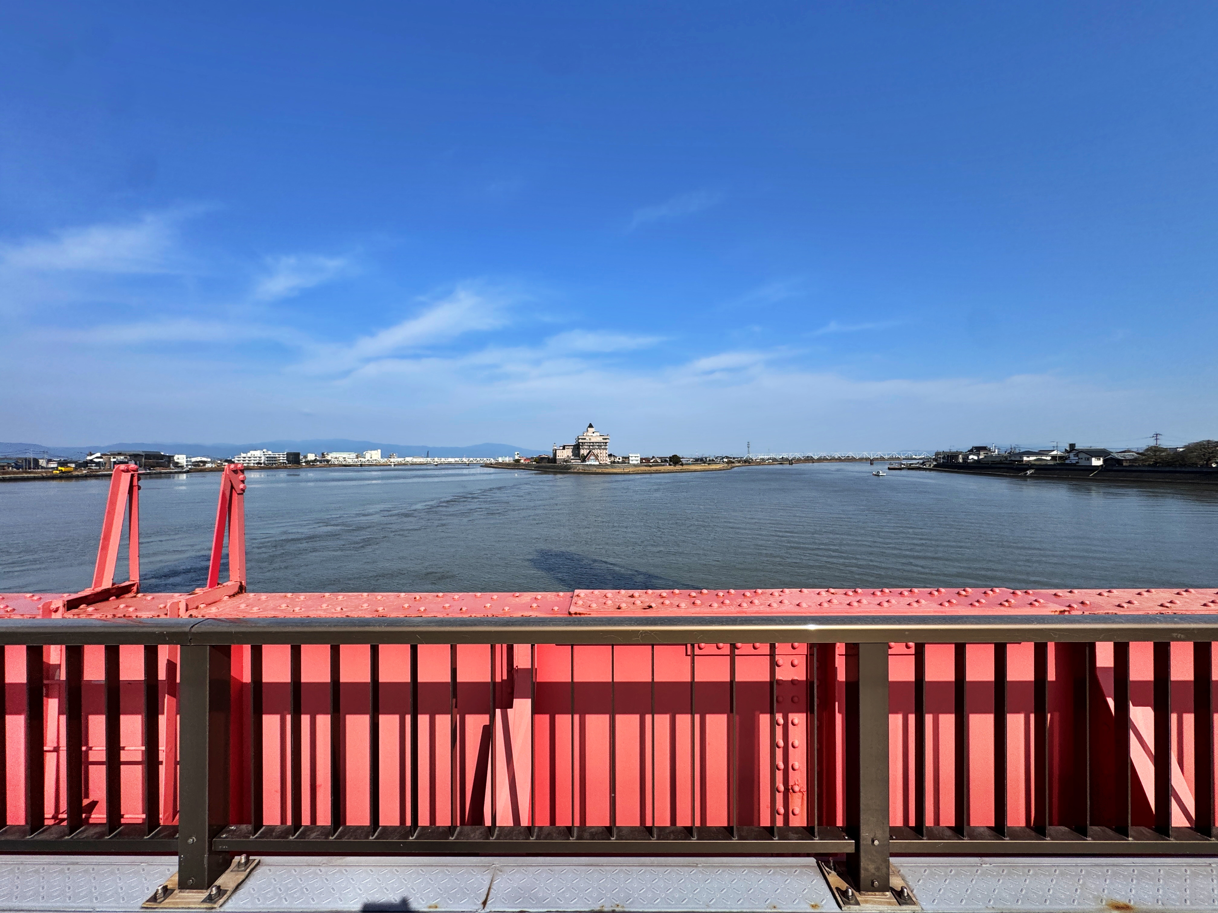 치쿠고와카츠역(筑後若津駅)이었던 뾰족한 건물 방향으로 올라가면 다리를 건널 수 있습니다.