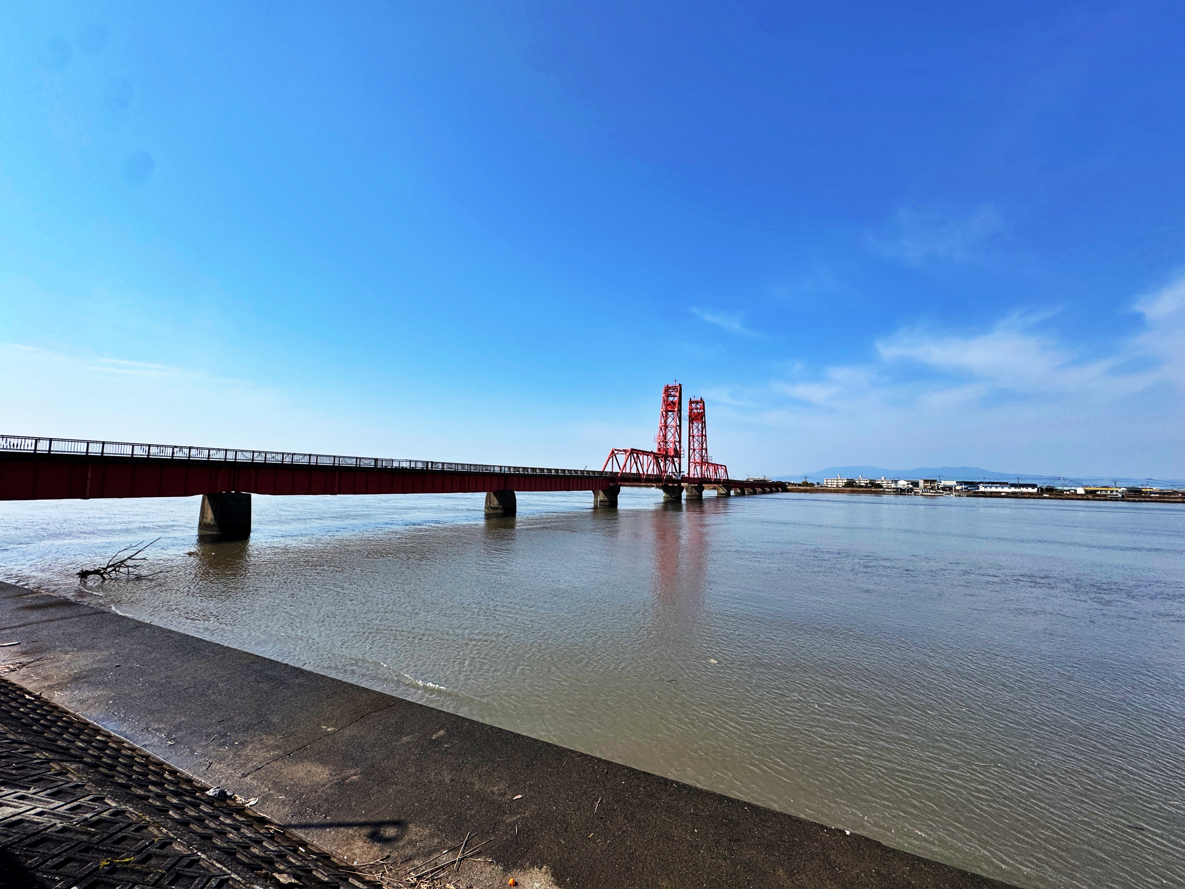 오래된 건물이 보이던 사거리를 거쳐 치쿠고강 승개교 전망공원(筑後川昇開橋展望公園)에 왔습니다. 말 그대로 다리 상판이 위 아래로 승강기처럼 올라가고 내려가는 그런 다리입니다. 비록 사가선 철도는 1987년 폐선되고 사라졌지만 그 자리에 남아있는 치쿠고강을 횡단하는 이 승개교는 1996년 주변의 공원화와 함께 횡단 할 수 있는 산책로가 개통되었고 2003년에 일본의 국가 지정 중요 문화재, 2007년에는 기계유산으로 인정되며 현재에 이르고 있다고 합니다.