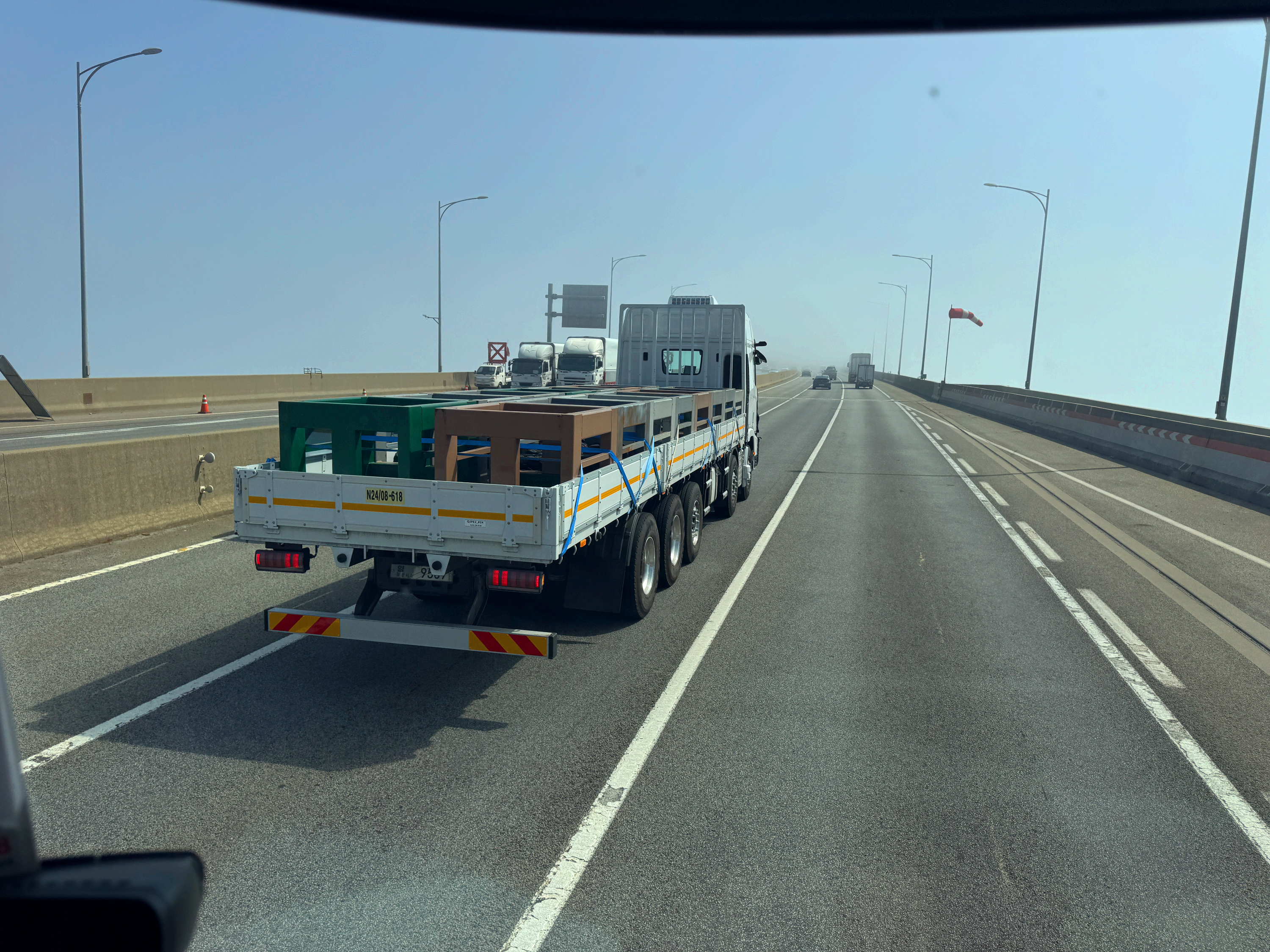 서해대교 상행선을 올라가고 있는데 가볍게 치고 올라오는 위장막이 쓰인 차량이 보였습니다.