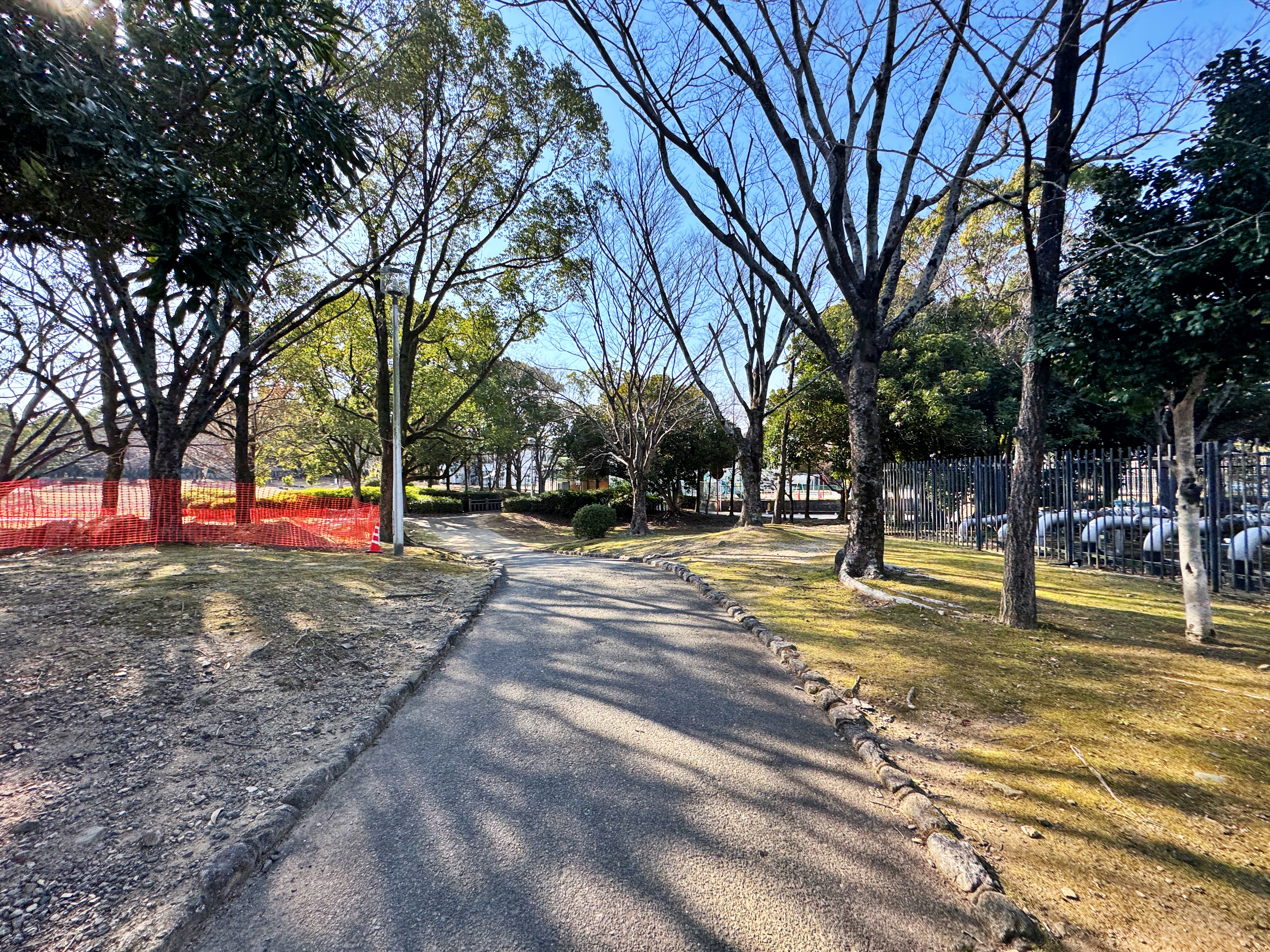 작은 타워맨션과 가정집이 쭉 늘어져 있었지요. 우측은 공원 담벼락입니다. 커다란 공원 안에 조류센터도 수영장도 스포츠센터도 과학관도 놀이공원도 다 있다고 보는 편이 맞을 겁니다.