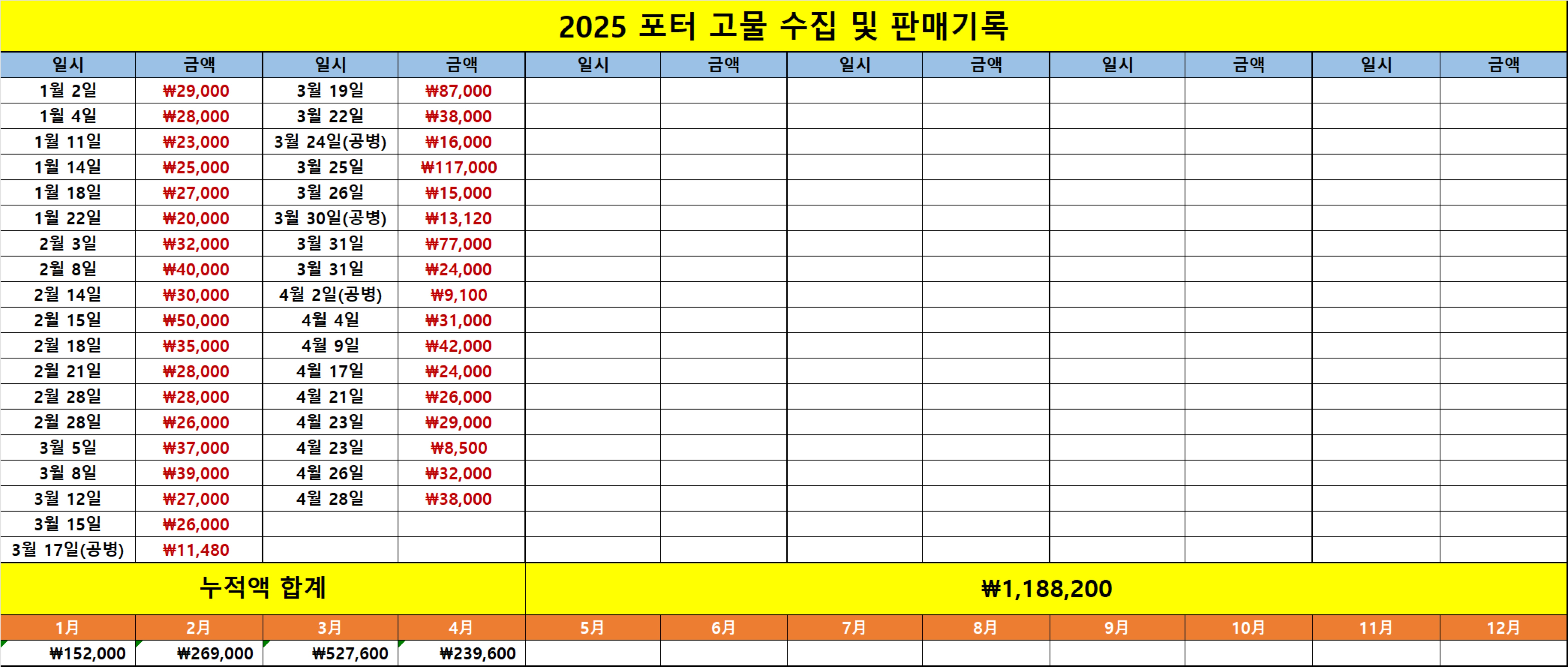 올해 누적은 1,188,200원.