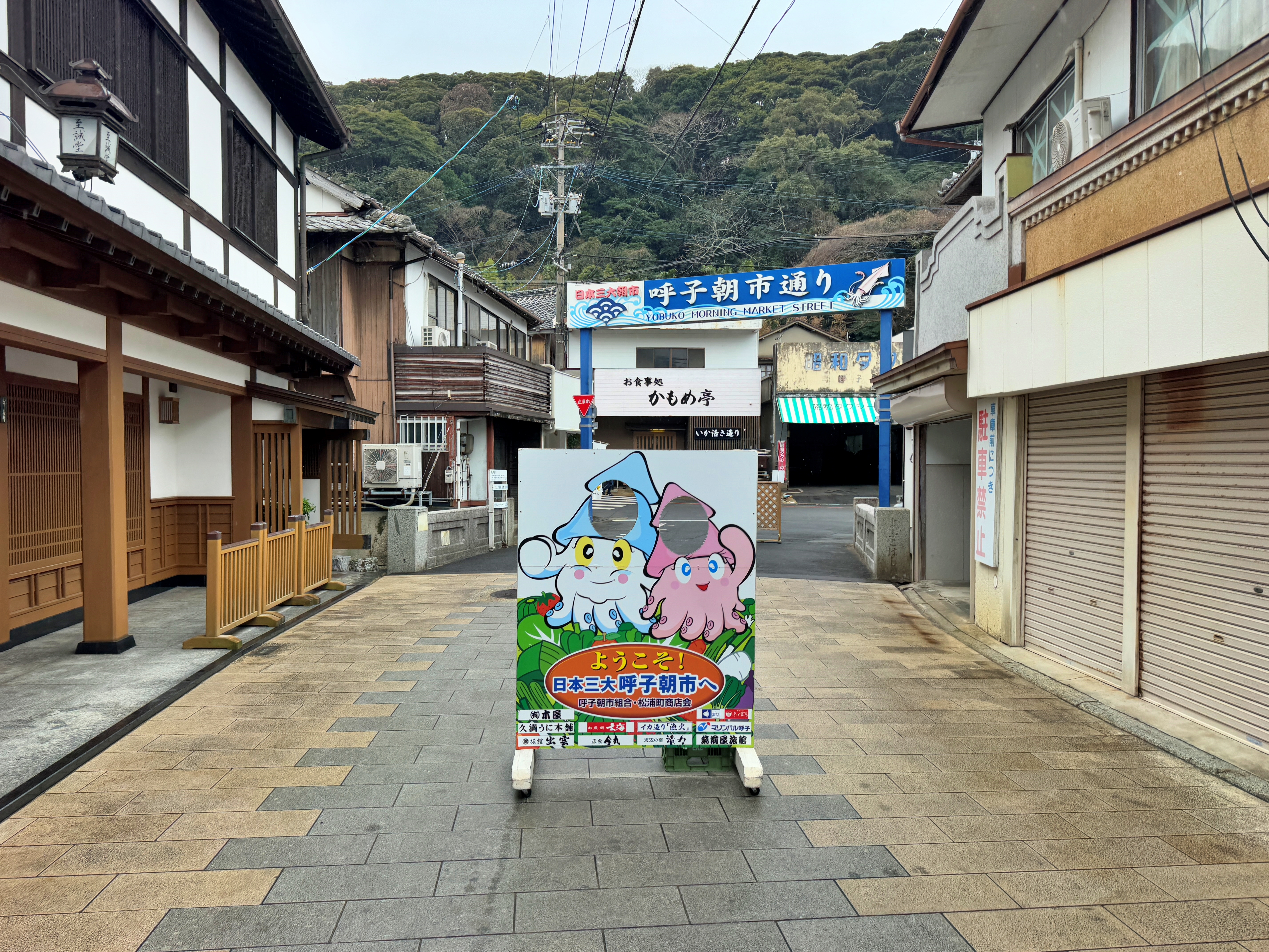 일본 3대 아침시장으로 유명한 가라쓰의 요부코 시장에 오신걸 환영한다는 문구가 보이네요.