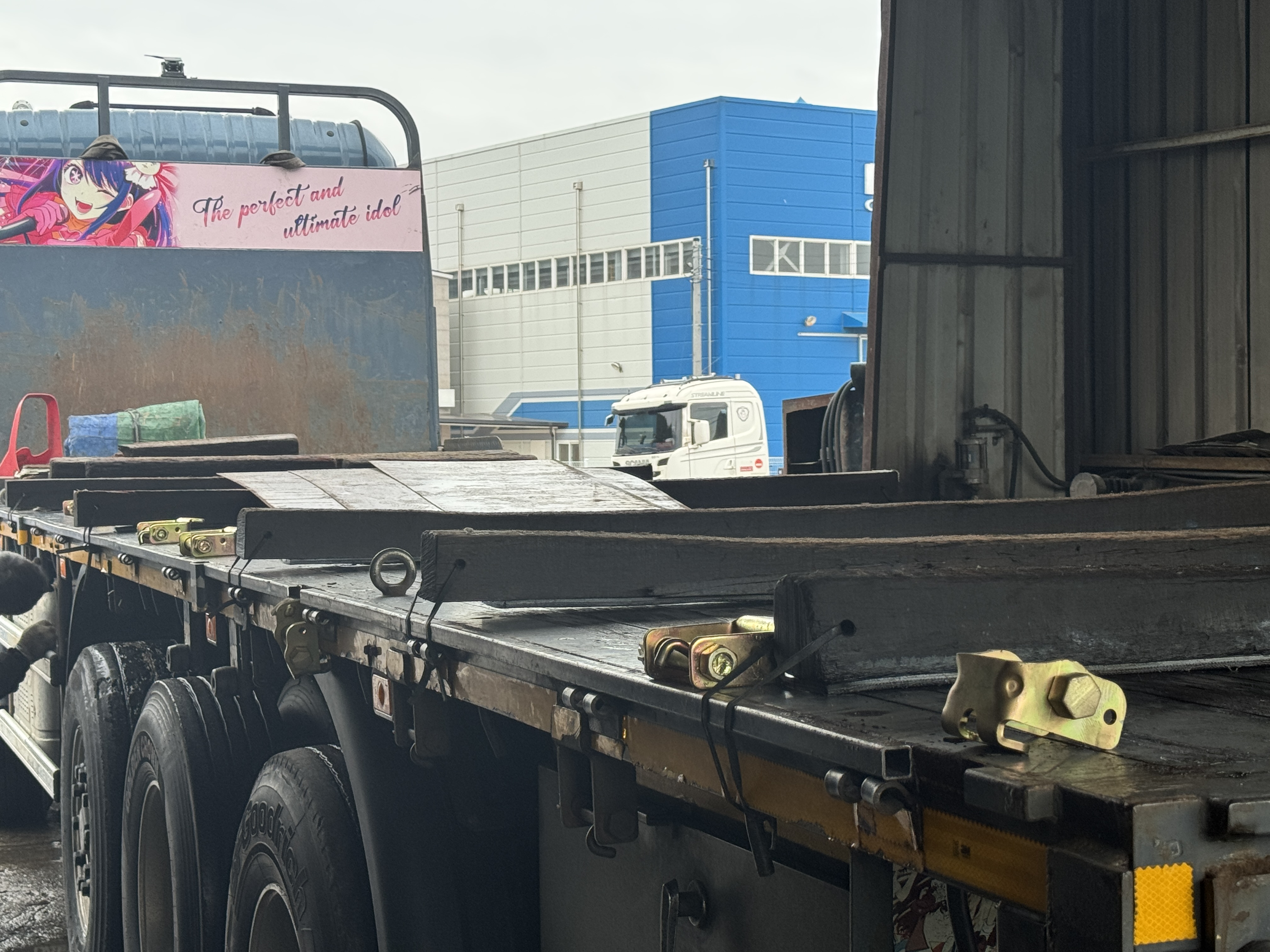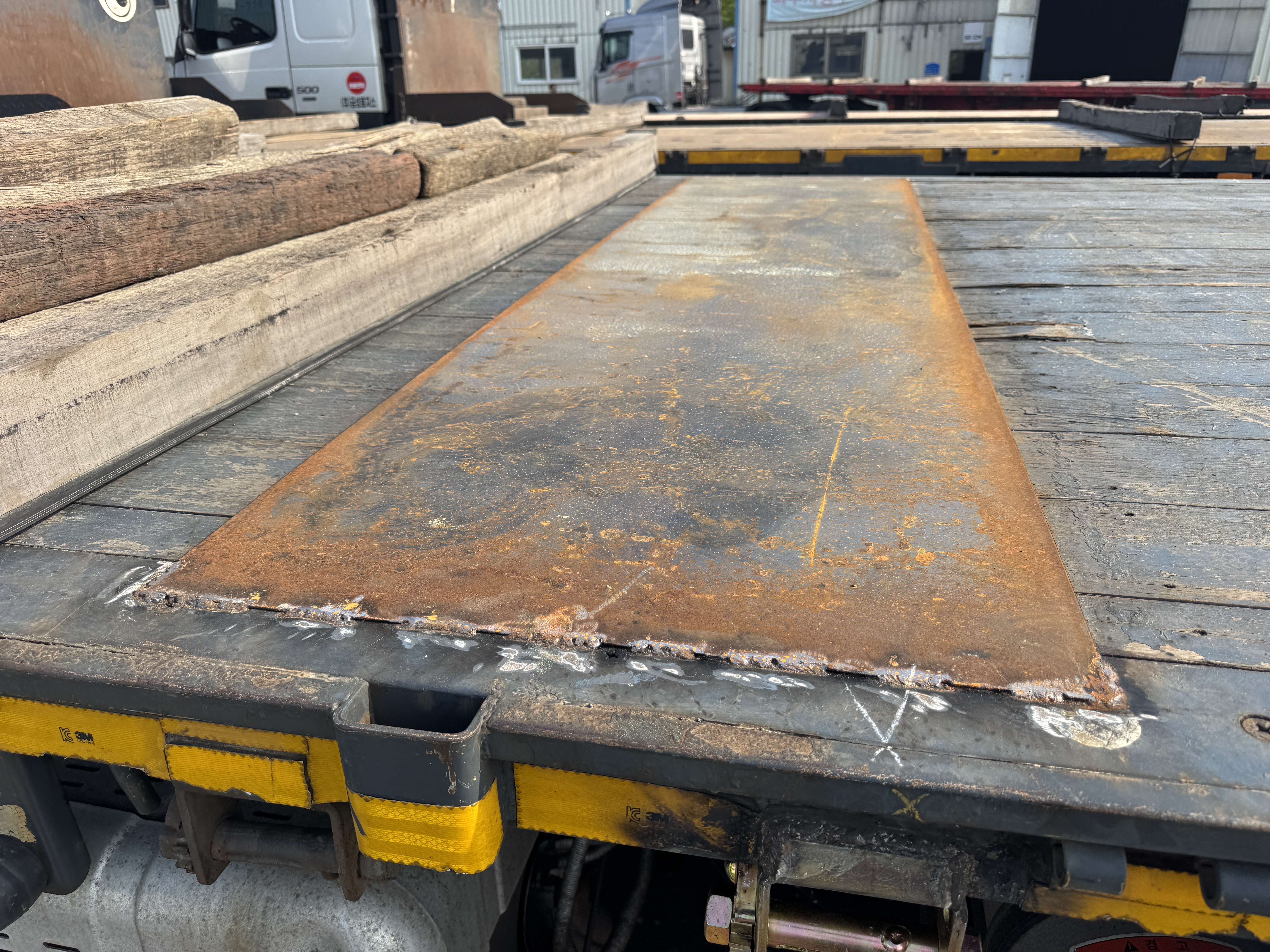 근데 바닥에 철판을 깔지 않으니 적재함 바닥 나무가 들고 일어납니다. 바닥 갈빗대도 주저앉았고요. 그래서 적재함 볼트를 다시 조이며 상태가 좋지 않은 부위만 철판을 덧대고 부착바도 추가로 몇개 더 장착했습니다.