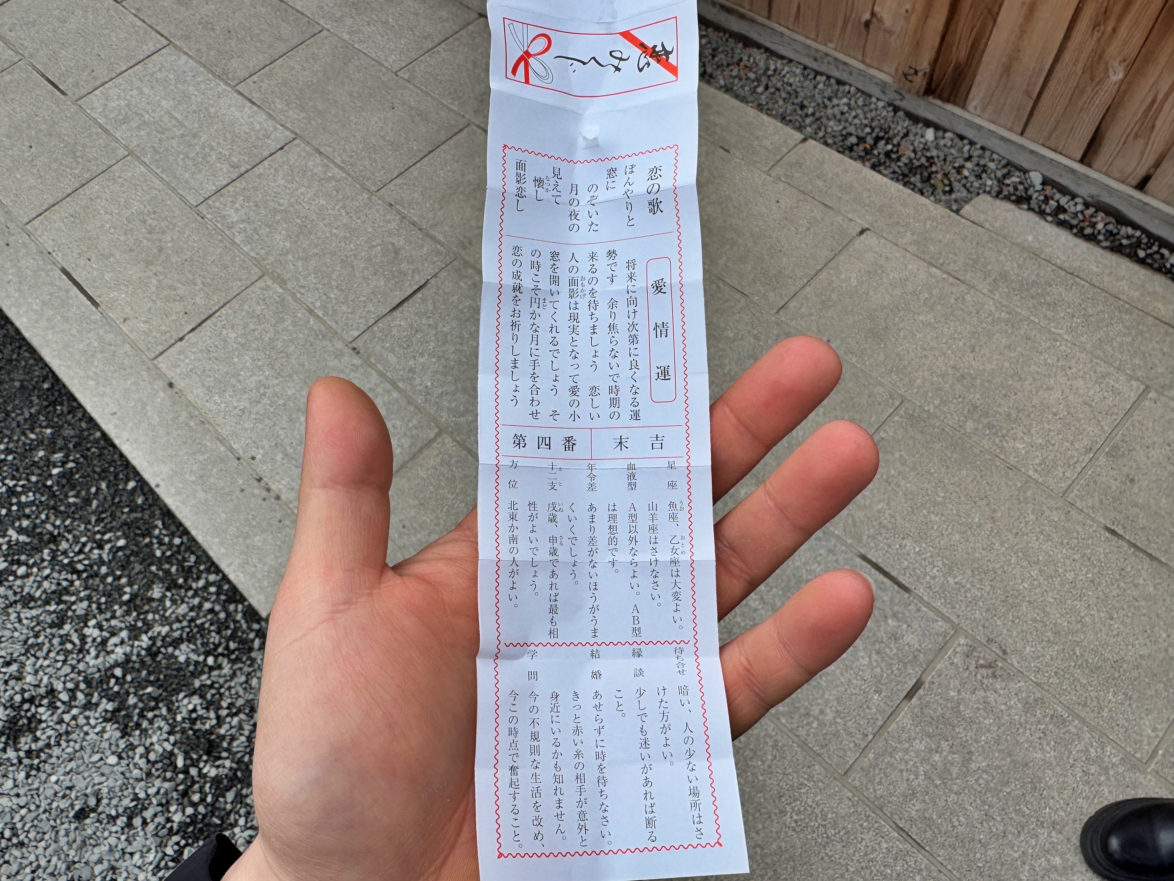 코이미쿠지를 하나 뽑았는데 나쁜 건 아니라네요.