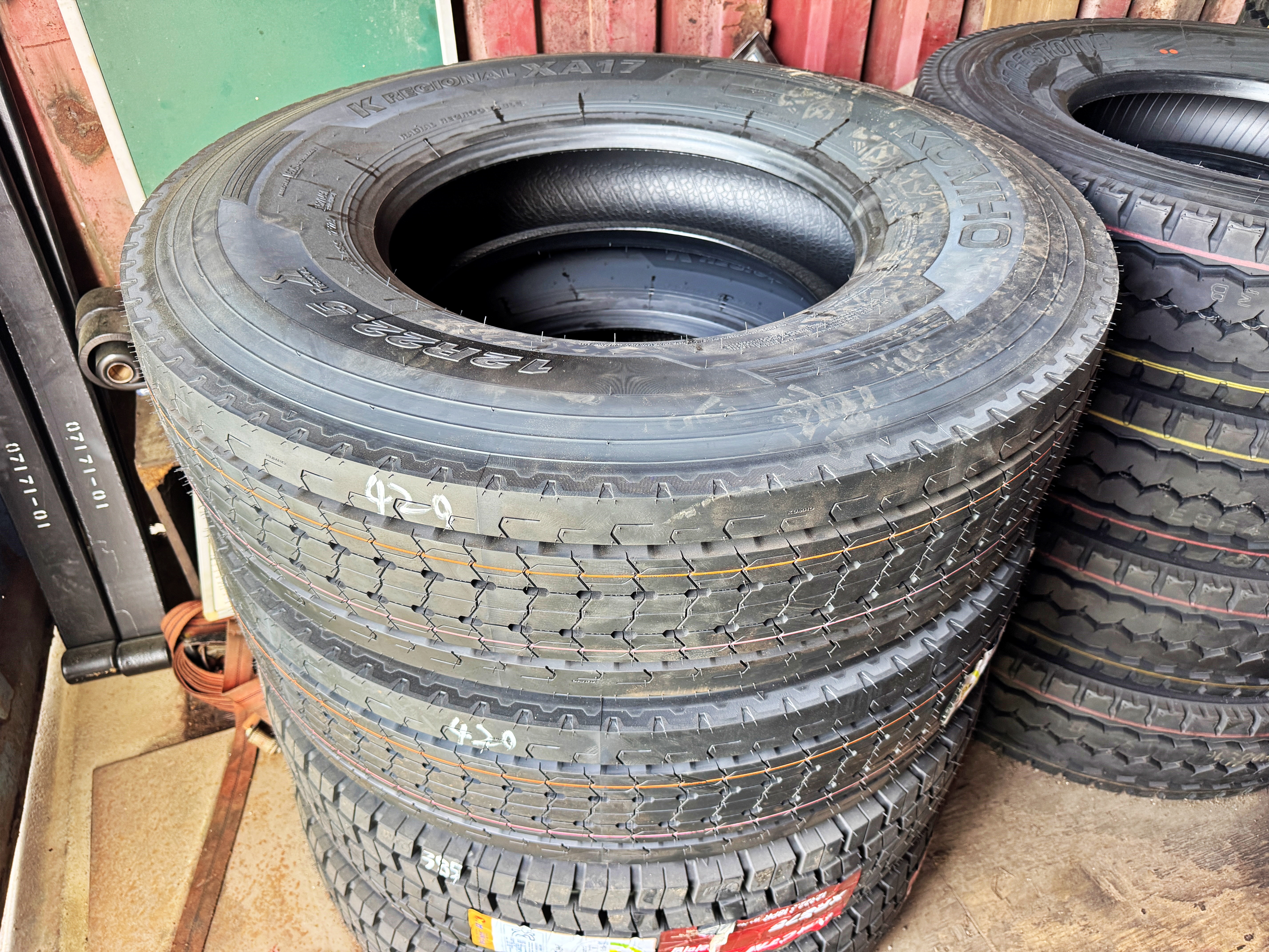 1축과 2축 타이어를 지금 시점에서 교체해야겠다는 생각은 딱히 없었습니다만, 구리스를 치러 간 김에 요즘 장거리도 자주 다니고 최근 타이어값도 대폭 상승했는데 아직 오르기 전 가격을 받는다고 하기에 그냥 1,2축 타이어를 교체하고 왔네요. 5축 타이어로 여름을 버틴 뒤 1,2축을 뒤로 밀어버릴 생각이었으나 그 계획을 조금 앞당긴 것이 되어버렸습니다.