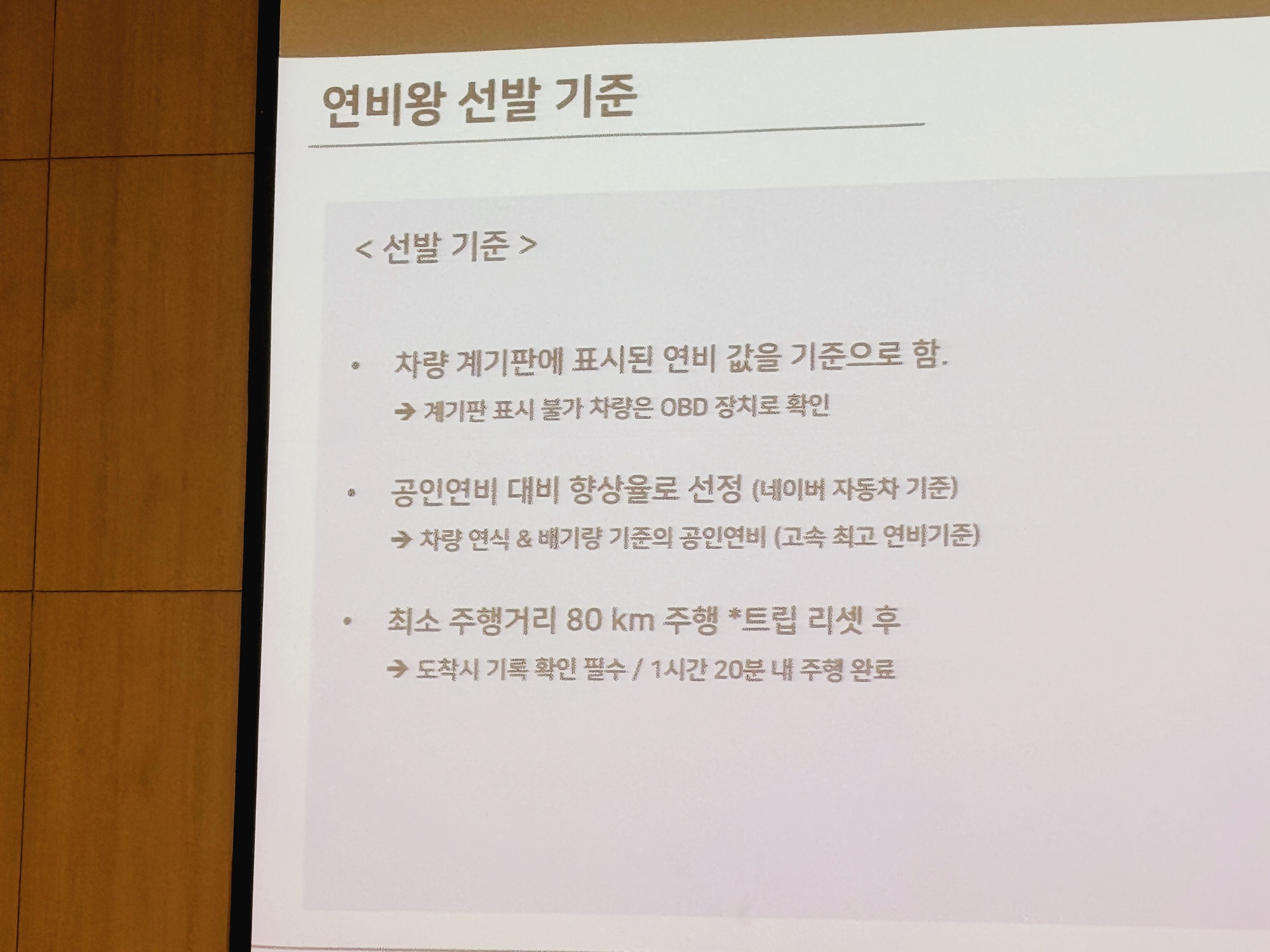 연비대회인지라 연비왕 선발 기준에 대해 자세한 설명도 이어집니다.