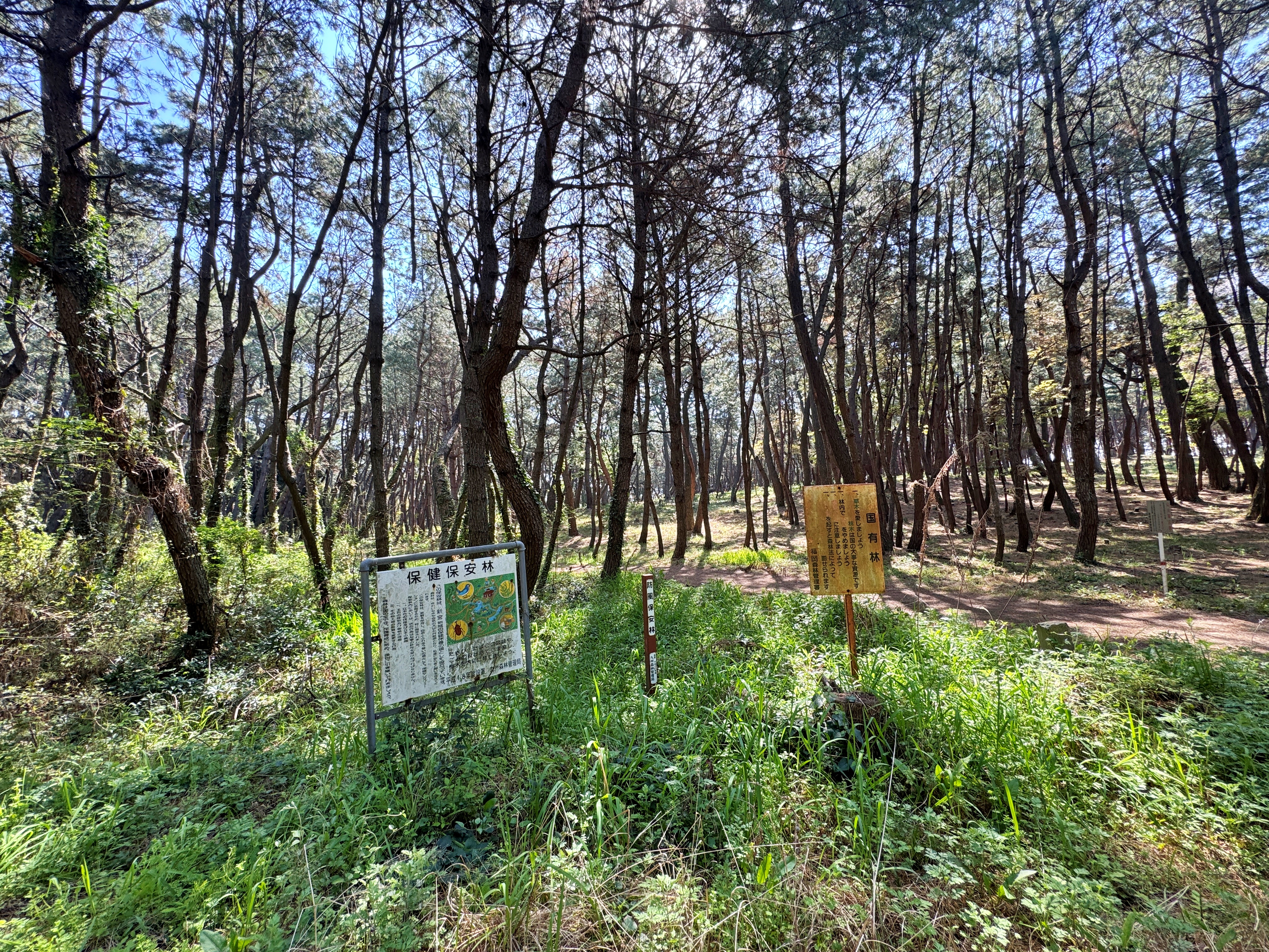 구름 한 점 없는 맑은 날인데도 일본 숲 특유의 음산함이 느껴집니다. 특히 오래된 안내문이 그 분위기를 더 음산하게 만들어줍니다.