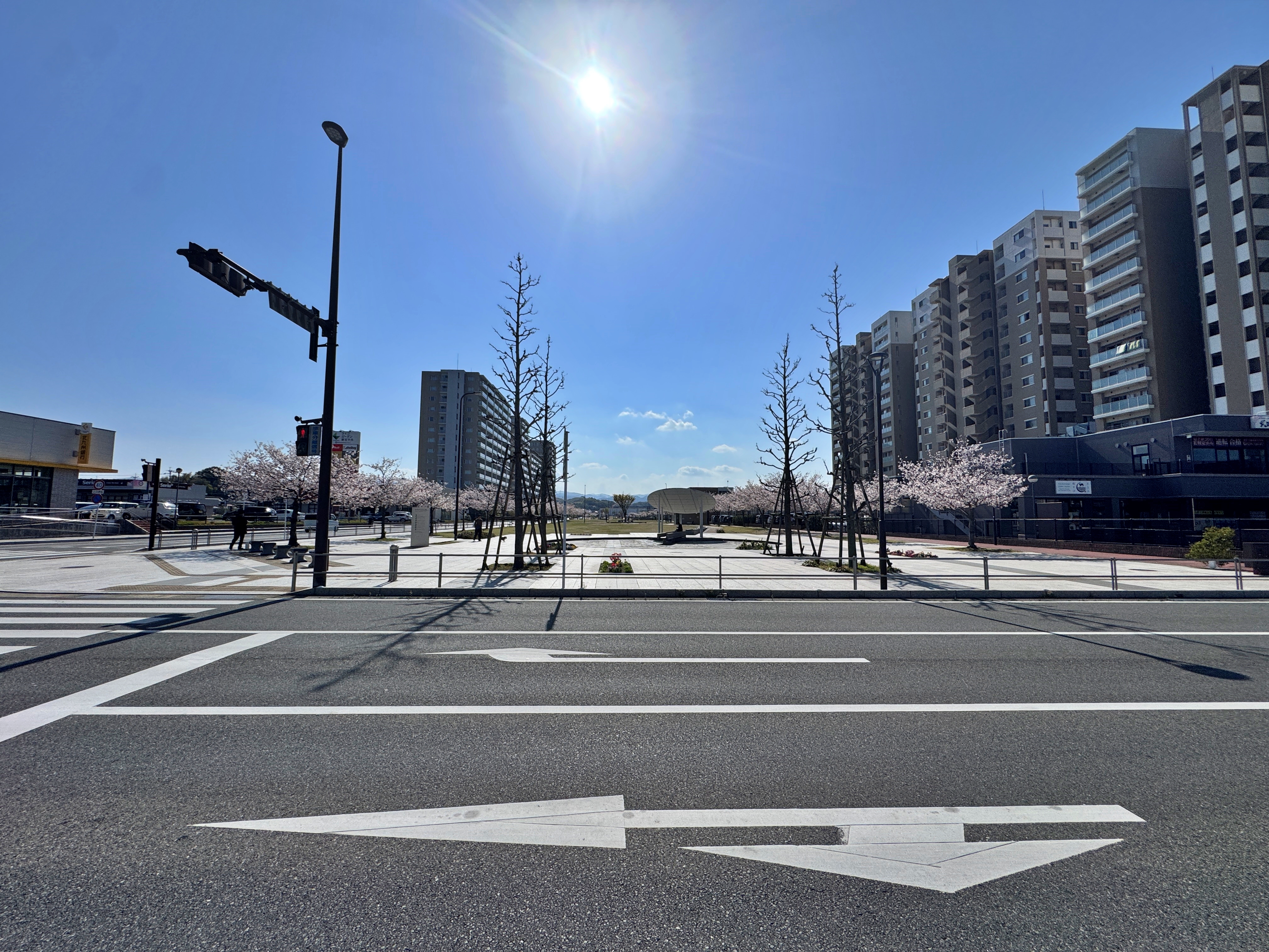 멀리서 보이는 니시테츠신구역(西鉄新宮駅)의 모습입니다.