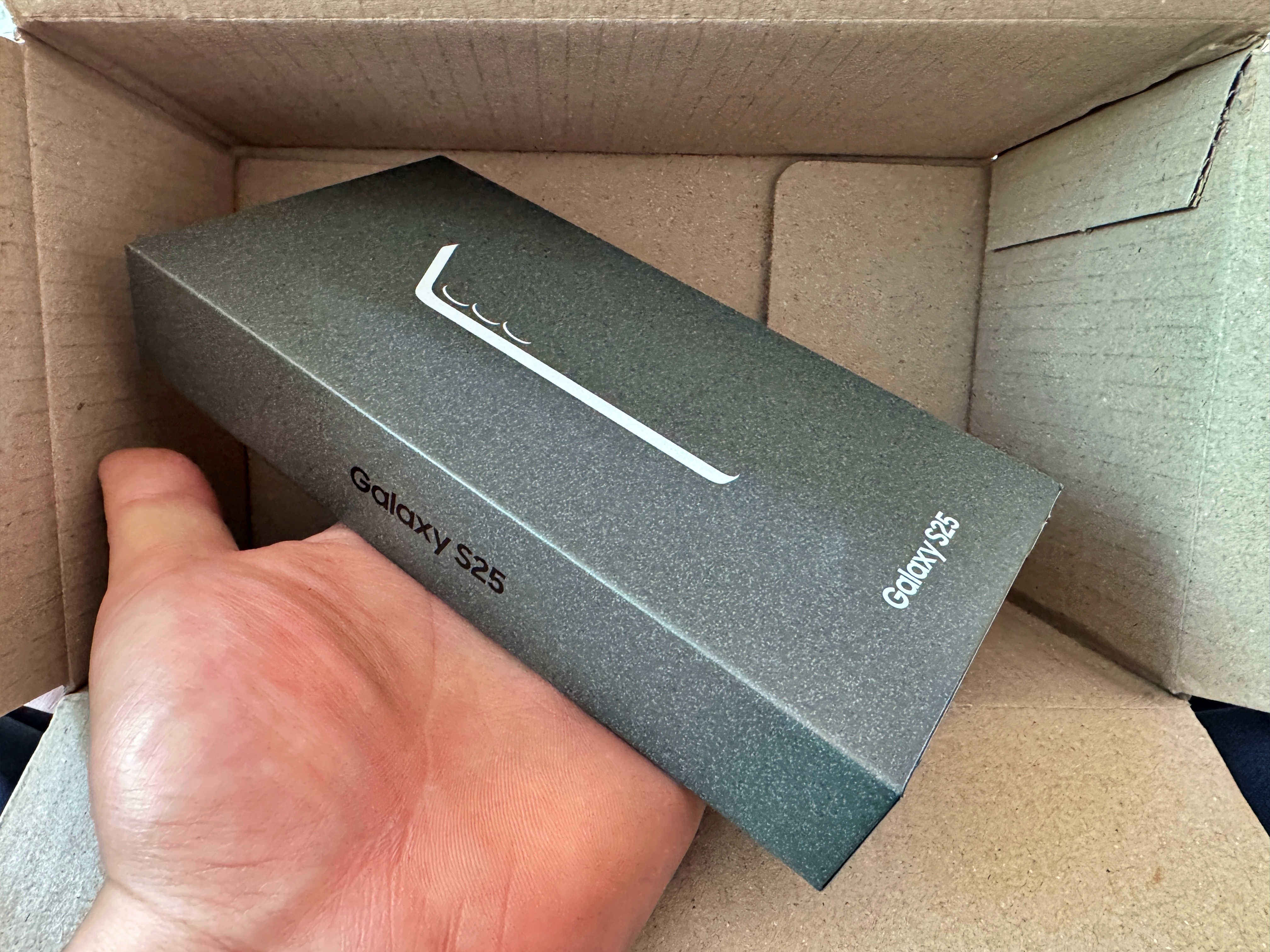 택배 상자 속에 있는 S25를 꺼냅니다. 확실히 예전보다 박스도 많이 작아졌습니다. 갤럭시 신품 박스를 뜯었던 것이 2018년에 구입했던 노트8이 마지막이니 그때에 비하면 박스도 구성품도 상당히 간결해졌습니다. 물론 애플이 먼저 충전기도 빼고 이어폰도 빼며 원가절감을 하는 모습을 보고 삼성도 그대로 따라하는 형국이긴 하지만요.
