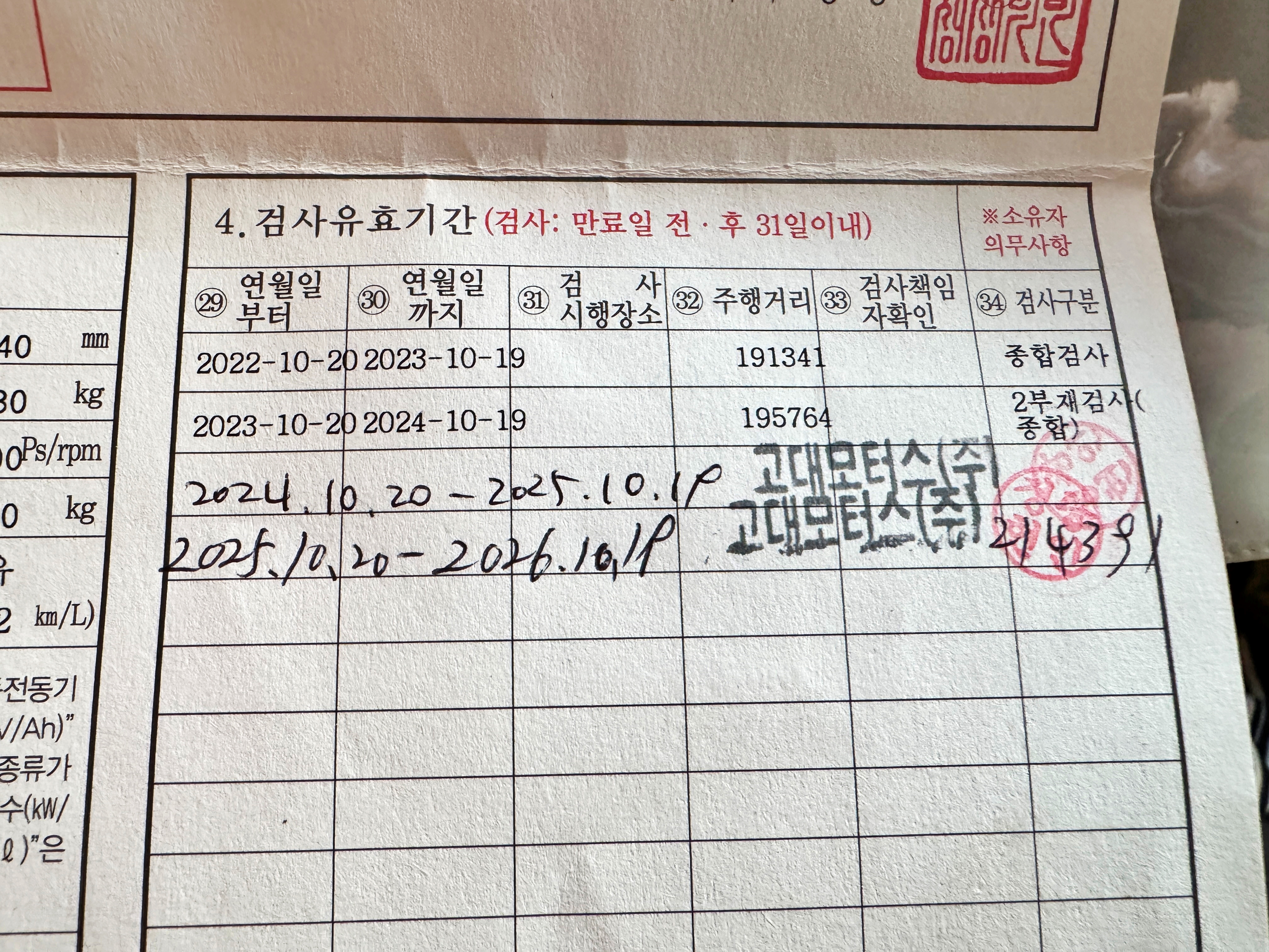 적폐 4등급 칠성사이다 포터. 또 검사기간이 도래했습니다. 2008년 10월에 등록된 차량인지라 10월 전으로 3개월 후로 1개월의 기간이 주어지는데, 작년에 의도치 않게 한방에 합격했던지라 이번에