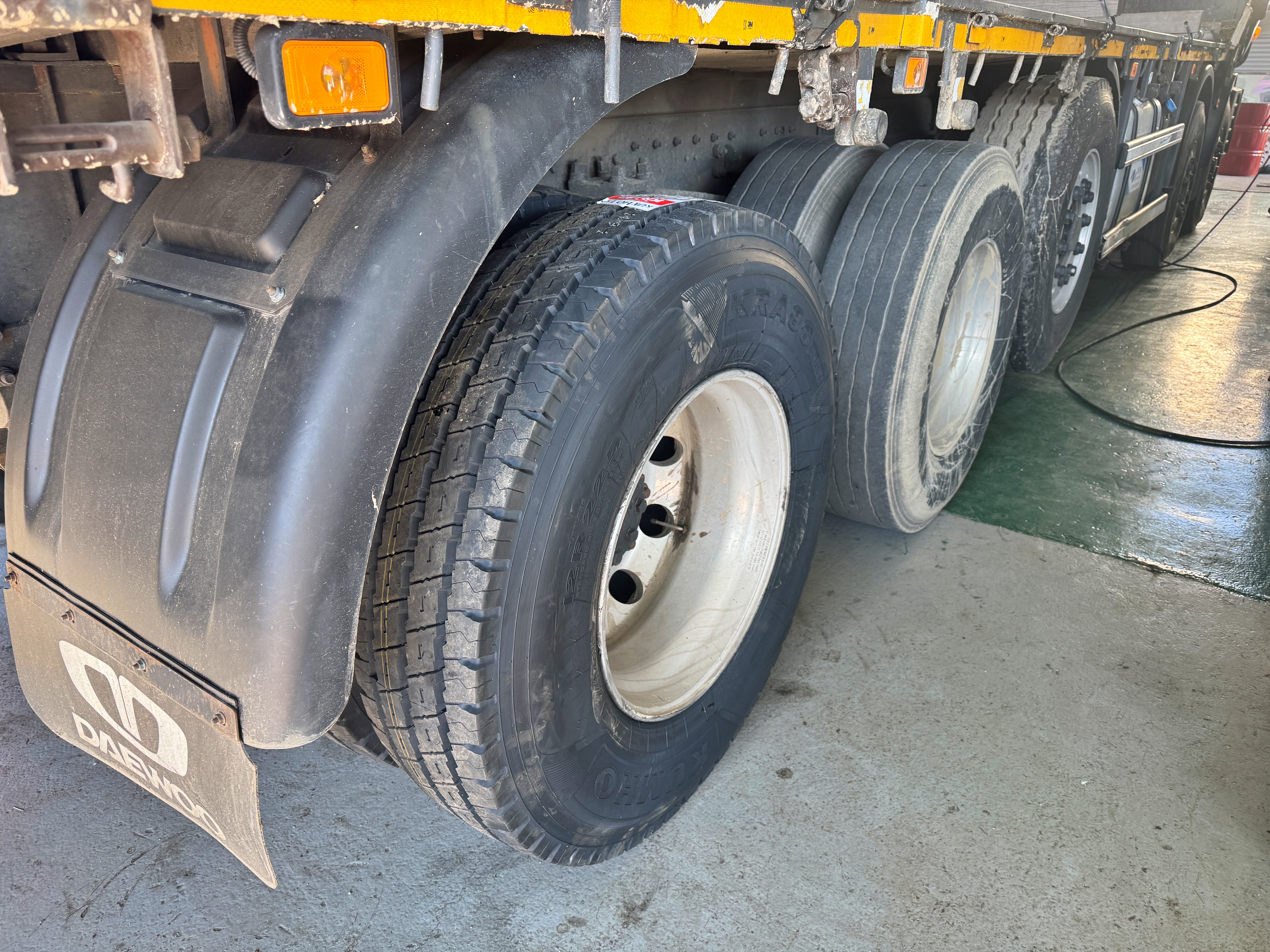 1,2축에 끼울 것이라면 딱 봐도 승차감이 영 좋지 않아보이는 이 타이어를 끼울 이유가 딱히 없겠지만 5축에 끼울 타이어인지라 네 줄 짜리 타이어보다 세 줄 짜리 타이어가 훨씬 낫기에 이 타이어를 선택했습니다.