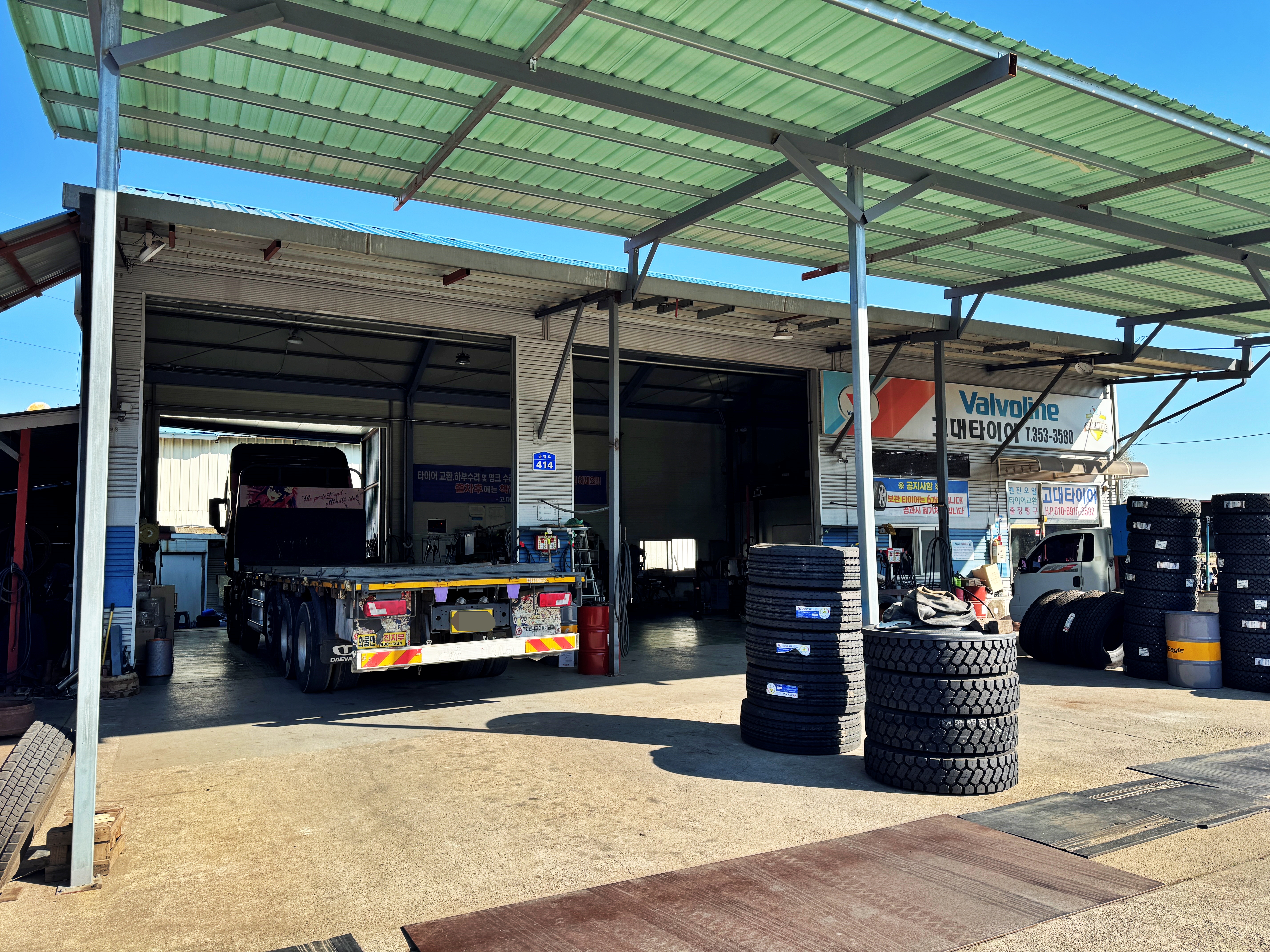 차고지 앞 카센터는 아주 바쁘기에 차로 1분 거리의 다른 타이어집으로 왔습니다.