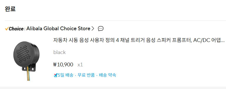 인터넷에서 같은 잭에 비슷하게 생긴 송학산업 제품이 배송비 포함 1.5만 원 수준. 일개 삑삑이가 뭐 이리 비싼가 싶어서 그럼 방향을 바꿔보기로 합니다. 나만의 후진벨을 만들어 보자고요. 알리익스프레스에 저렴한 가격에 원하는 음원을 넣을 수 있는 부저를 구입하기로 합니다. 이게 훨씬 더 저렴합니다.