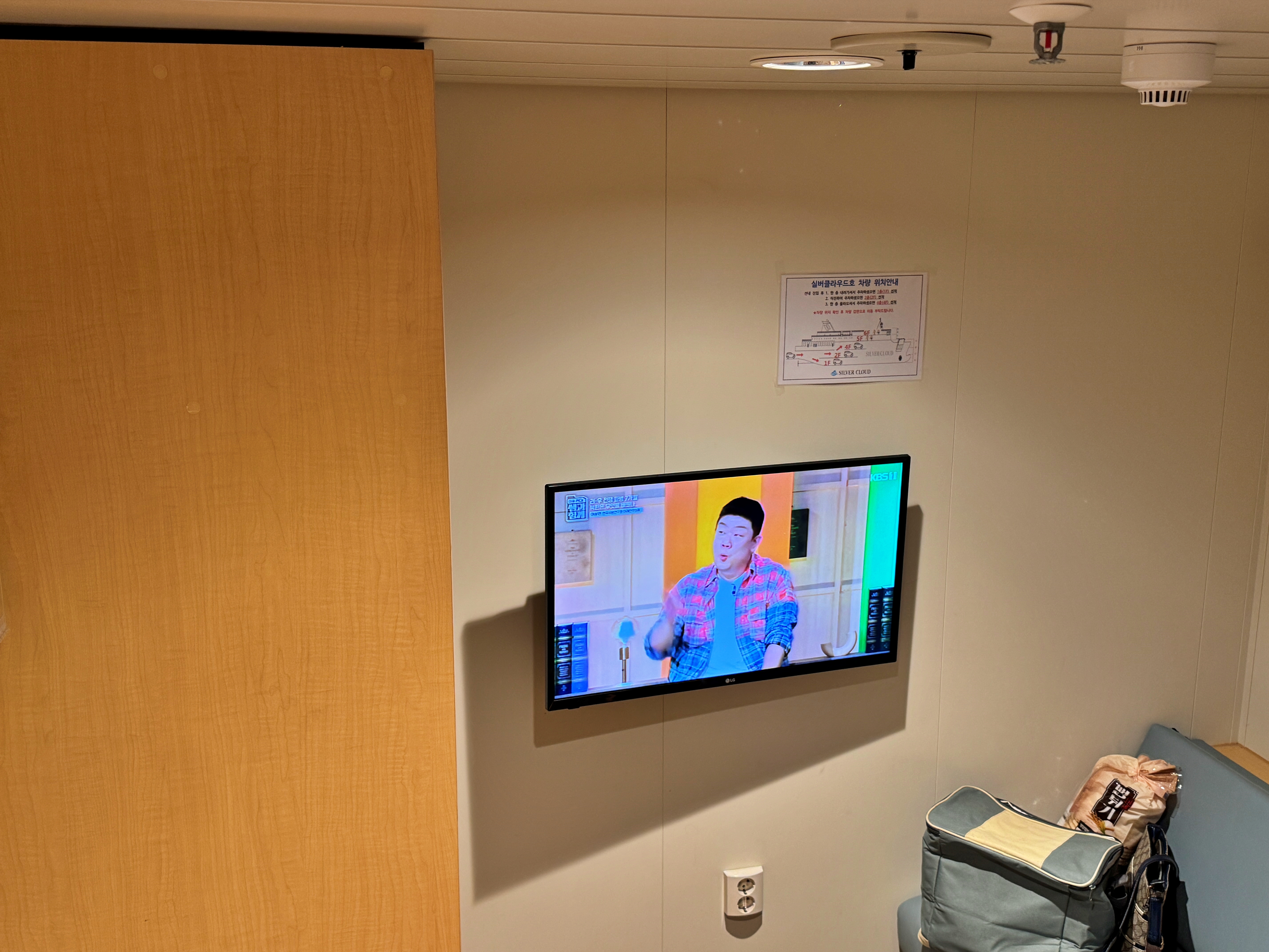승선시간이 길지 않은지라 따로 객실에 개별 화장실은 존재하지 않았습니다. 특실에는 샤워실과 화장실이 있긴 하다네요. 여기서 하룻밤을 보내야 한다면 모르겠는데, 있어봐야 세 시간 수준이니 크게 불편하진 않았습니다.