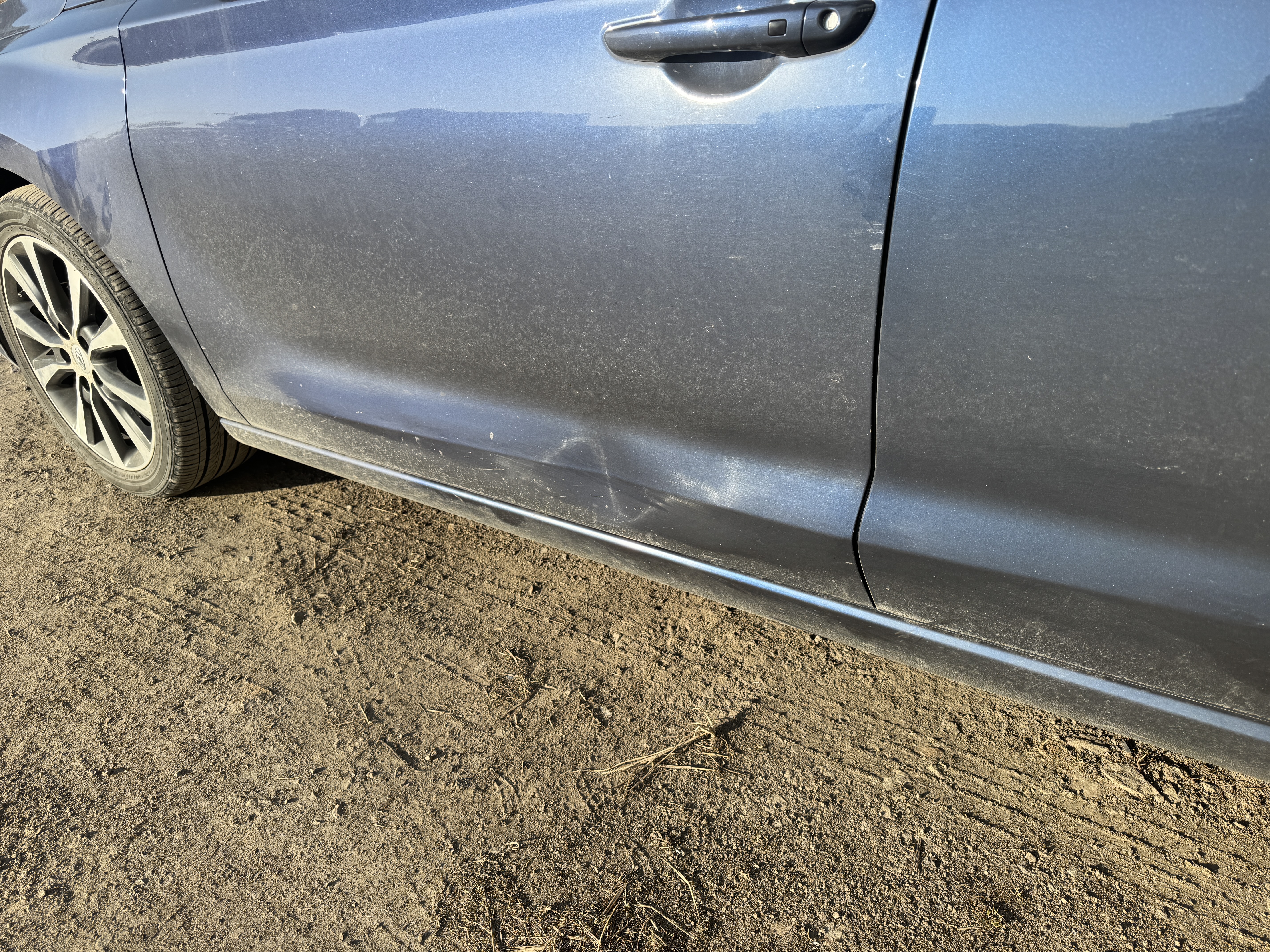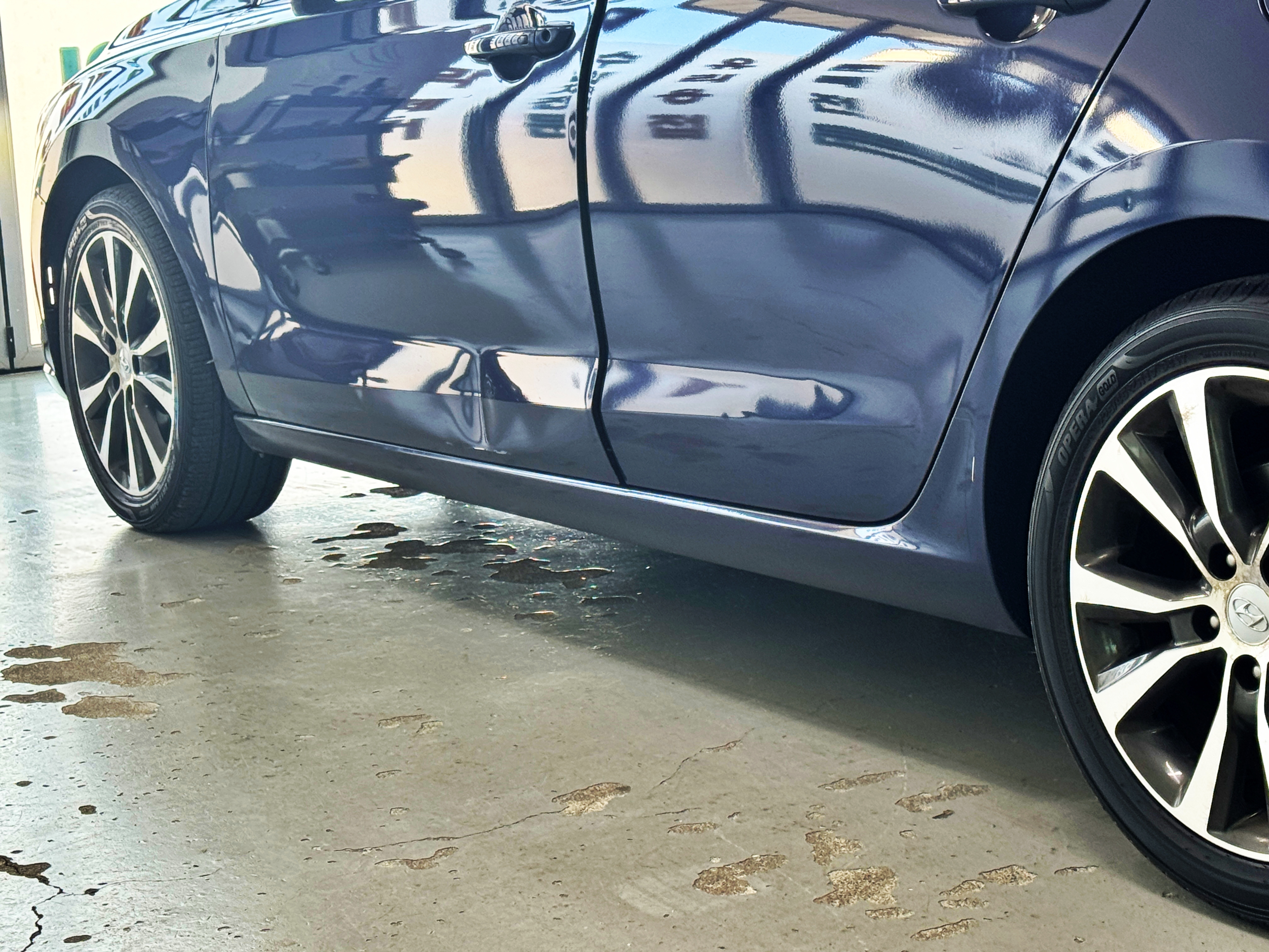 저 상태로 조금 더 다니니 찌그러진 자리 아래에 날이 추워서 칠까지 깨져서 떨어졌습니다. 보험이력 0원 무사고 무빵 무교환 차량을 가져온지 며칠만에 문짝 교환차로 만들고 싶은 생각은 없기에 덴트로 가능할지부터 알아봤습니다. 덴트집 사장님께 문의해 보니 가능할 것 같다고 해서 실내클리닝이 끝난 차를 바로 찾아서 덴트집으로 향했습니다.