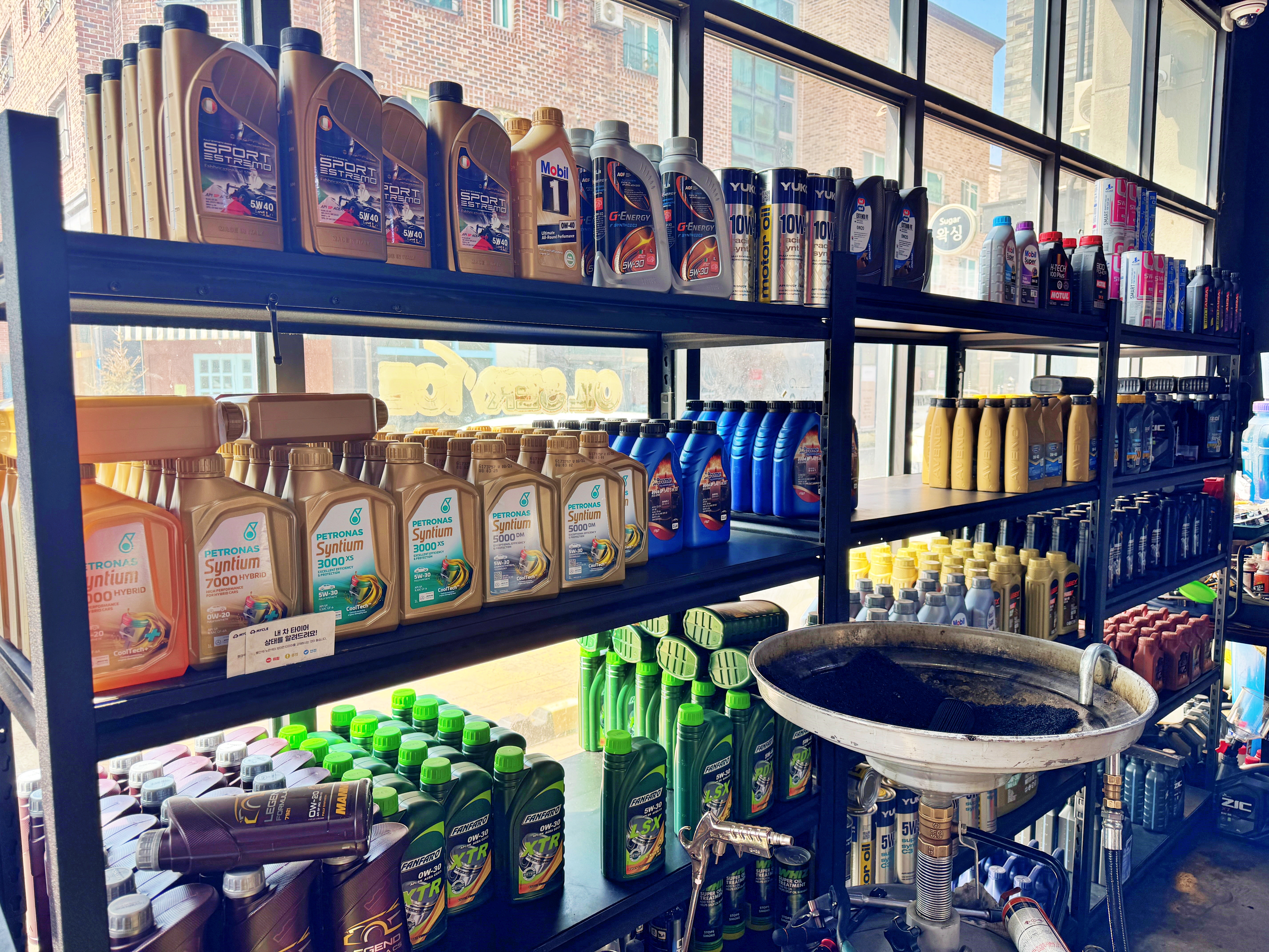 보통의 엔진오일 전문점처럼 다양한 수입 윤활유를 취급하고 있었습니다.