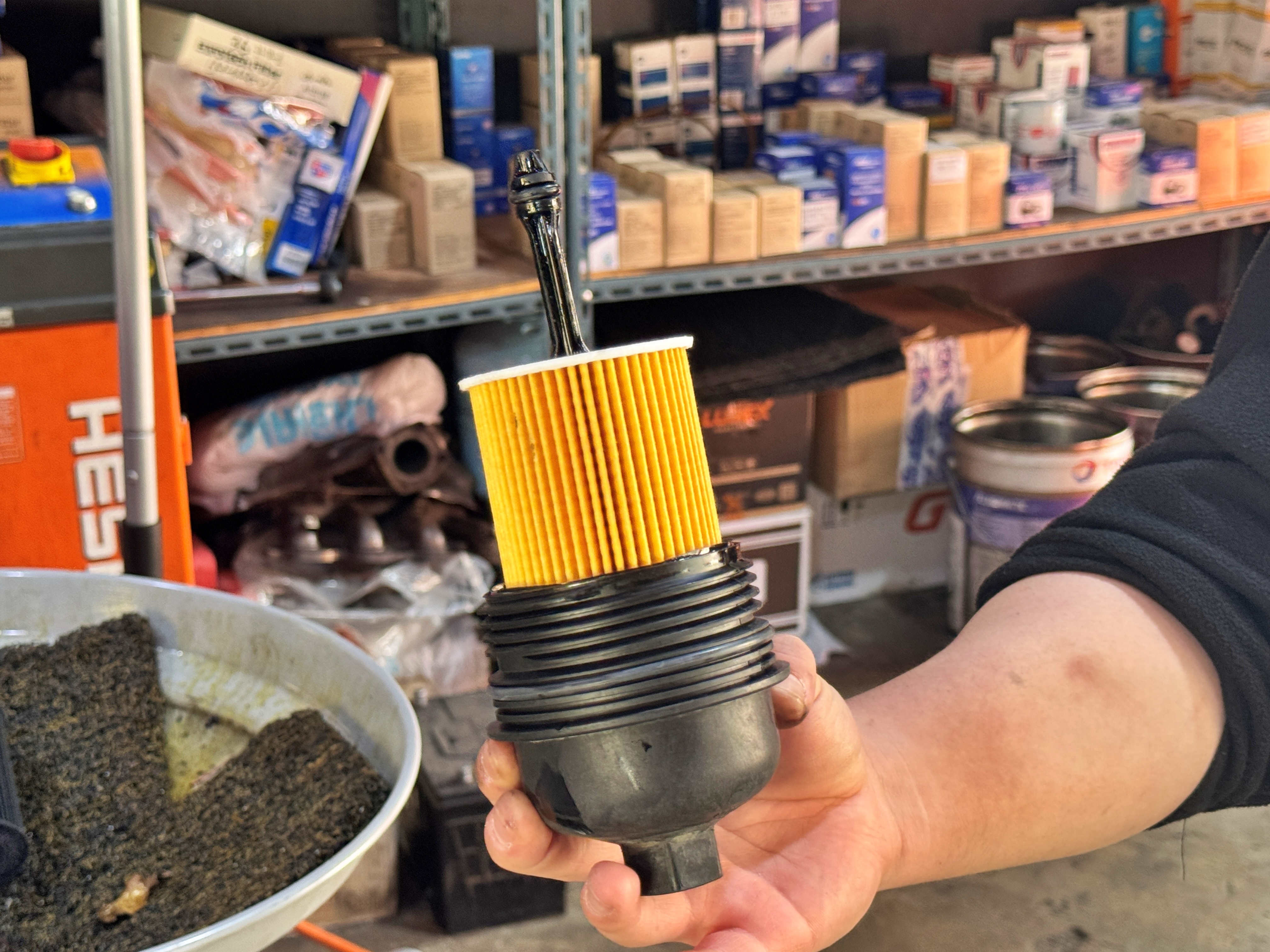 새 오일필터 카트리지를 장착하고 작은 오링까지 잘 장착되었음을 확실히 확인했습니다.