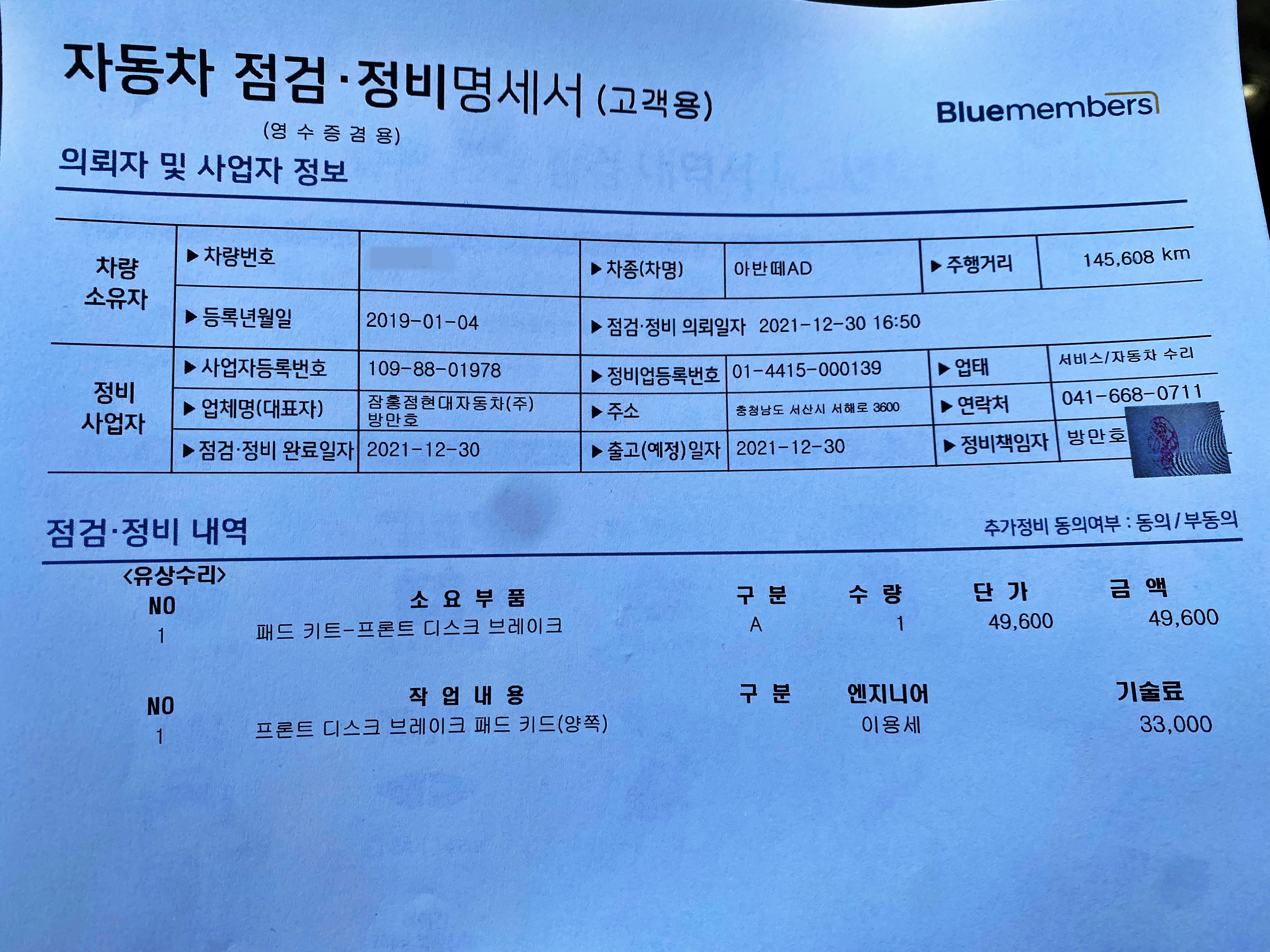 그리고 해가 바뀌면 소멸되는 블루기본점검도 함께 받기로 합시다.