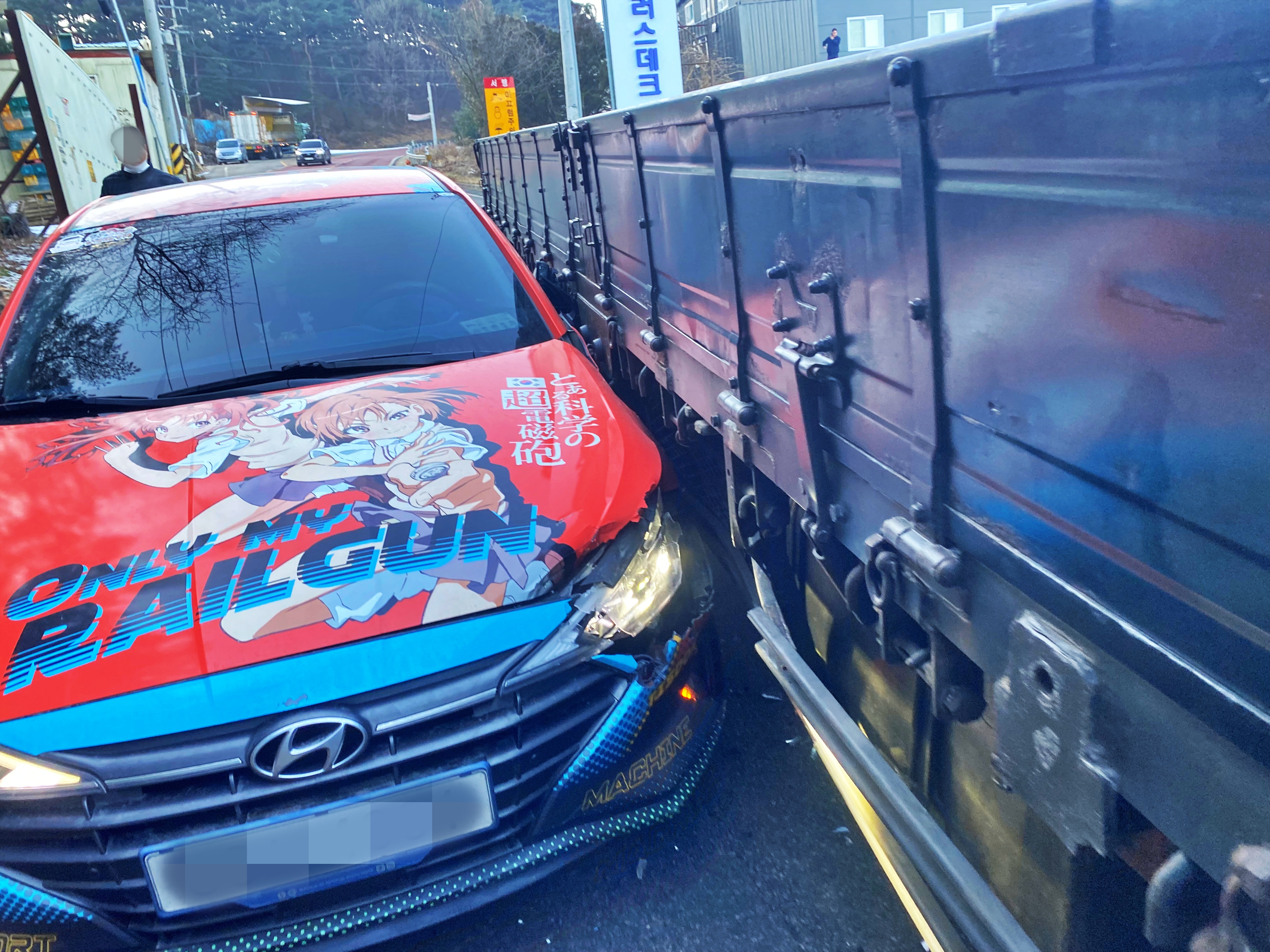 커브를 돌아 나왔는데, 5톤차가 좌회전을 하네요. 브레이크를 잡았는데 밀려서 트럭 주유구 옆 난간대를 박고 같이 돌아서 섰습니다. 15만km 가까이 타면서 주차장에서 범퍼 하나만 긁혀서 범퍼 칠만 했었지 실질적인 무빵 무교환 기록이 깨져버렸네요. 무빵으로 한 30만km 타고 팔아볼랬더니 차 다 팔아먹었습니다.