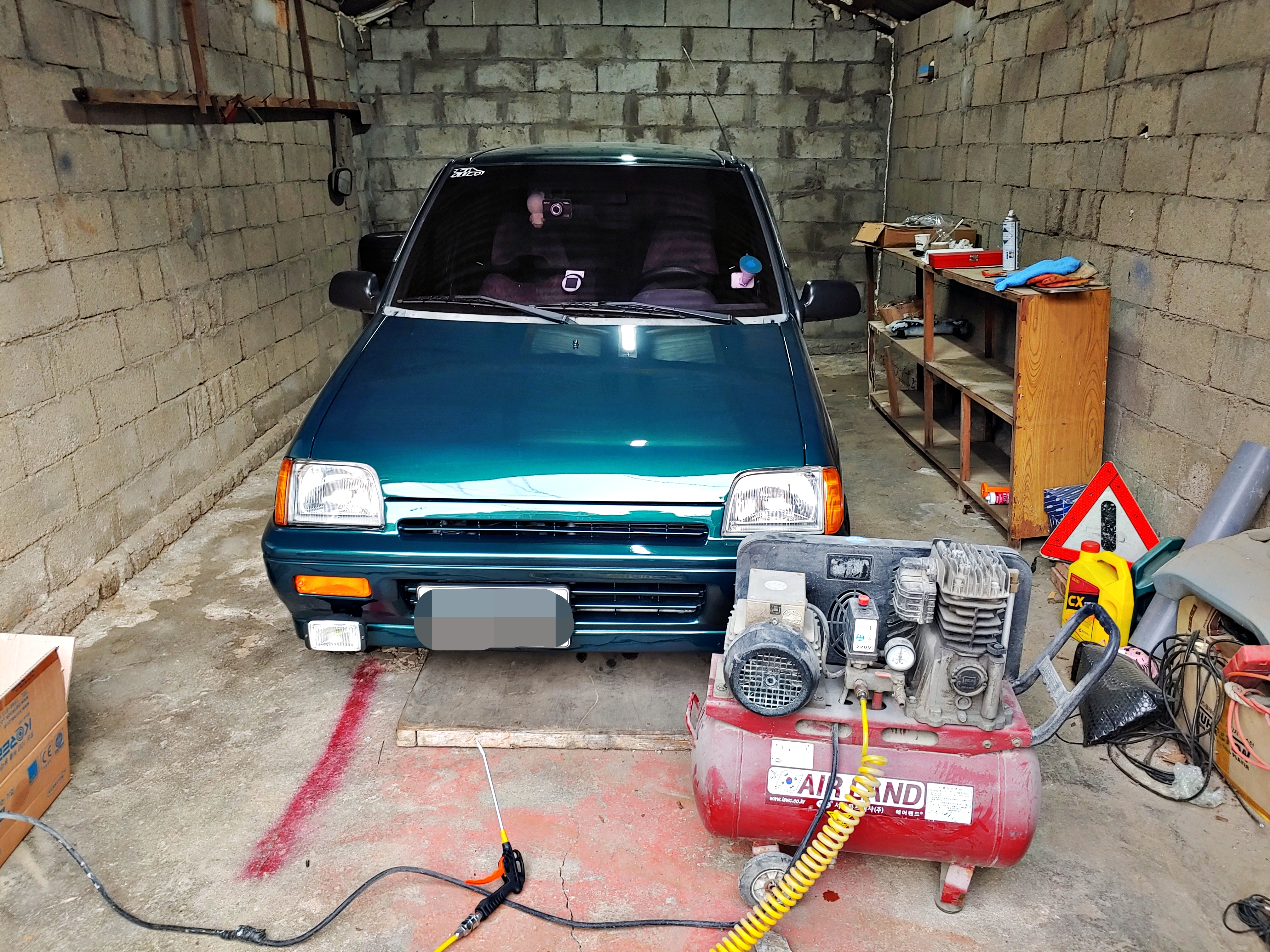 눈 앞에 보이는 만만한 티코 위에 앉은 먼지를 에어건으로 제거해봅시다.