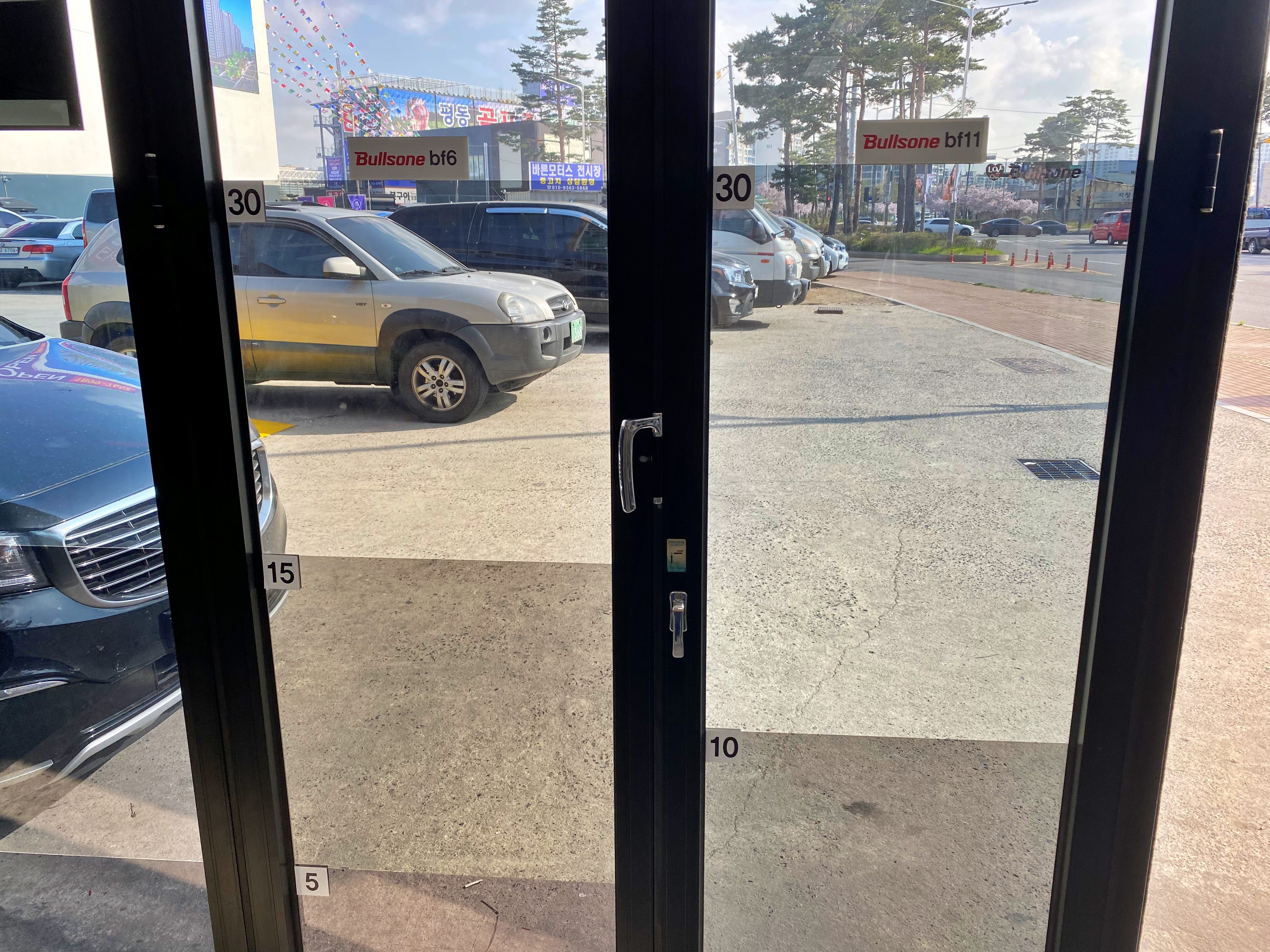 B.F 6, B.F 11 필름이 나란히 붙여져 있었습니다. 참고로 좌측은 이 매장에서 함께 취급하는 중저가형 타 브랜드 필름입니다. 같은 30% 농도라 하더라도 B.F 6 대비 B.F 11이 시안성이 훨씬 좋아 보입니다. 그렇다고 B.F 6이 스펙상으로도 그렇지만 성능이 떨어지는 필름도 아닌 것이, 같은 30%로 비교해도 타사의 중저가형 제품보다는 훨씬 밝게 느껴집니다.