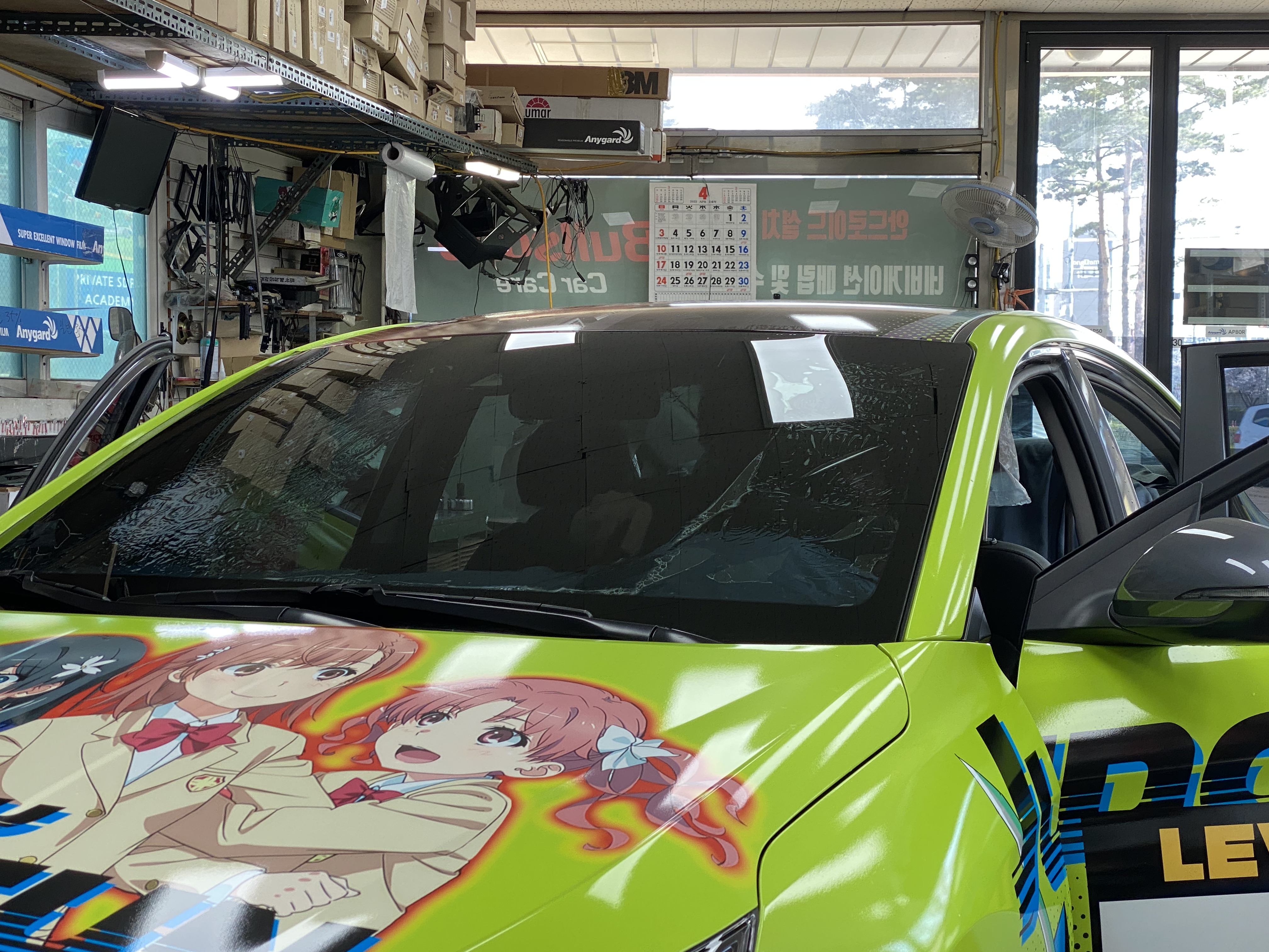 운전자의 시야에서 보이는 이물질은 없는지. 필름이 떠있는 부분은 없는지 다시 확인합니다. 간간히 헤라로 다시 밀어주는 부분들이 있었는데, 최종적으로 물기가 약간 남아있는 부분을 제외하곤 뜨거나 이물질이 들어간 부분은 없었습니다. 다른 분들은 시공점의 실수로 생긴 문제들이 있었다고 하는데, 저는 다행히 실력 좋은 사장님과 직원분들을 만나 흠을 잡을만한 문제는 없었습니다.