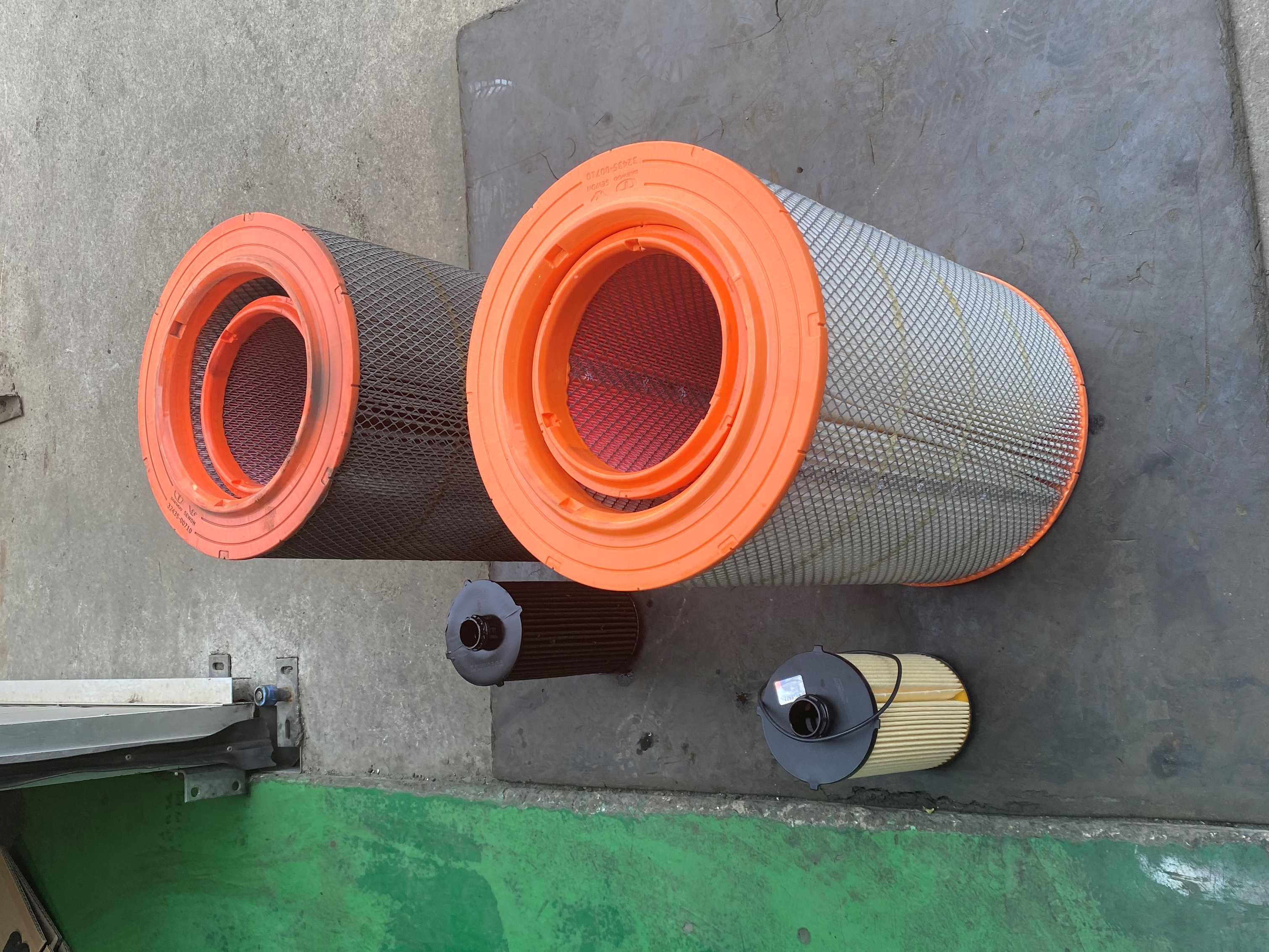 대우트럭 박스에 담겨있는 물건은 에어크리너. 우측 녹색 봉지에 담겨있는 물건은 에어컨 필터입니다. 좌측 CNH 인더스트리얼 로고로 된 박스는 오일필터네요. 에어크리너는 국내 생산품이지만, 오일필터는 FPT에서 공급하는 제품입니다. 지난번에 자비로 교체하며 보니 저 필터만 7만원이더군요.