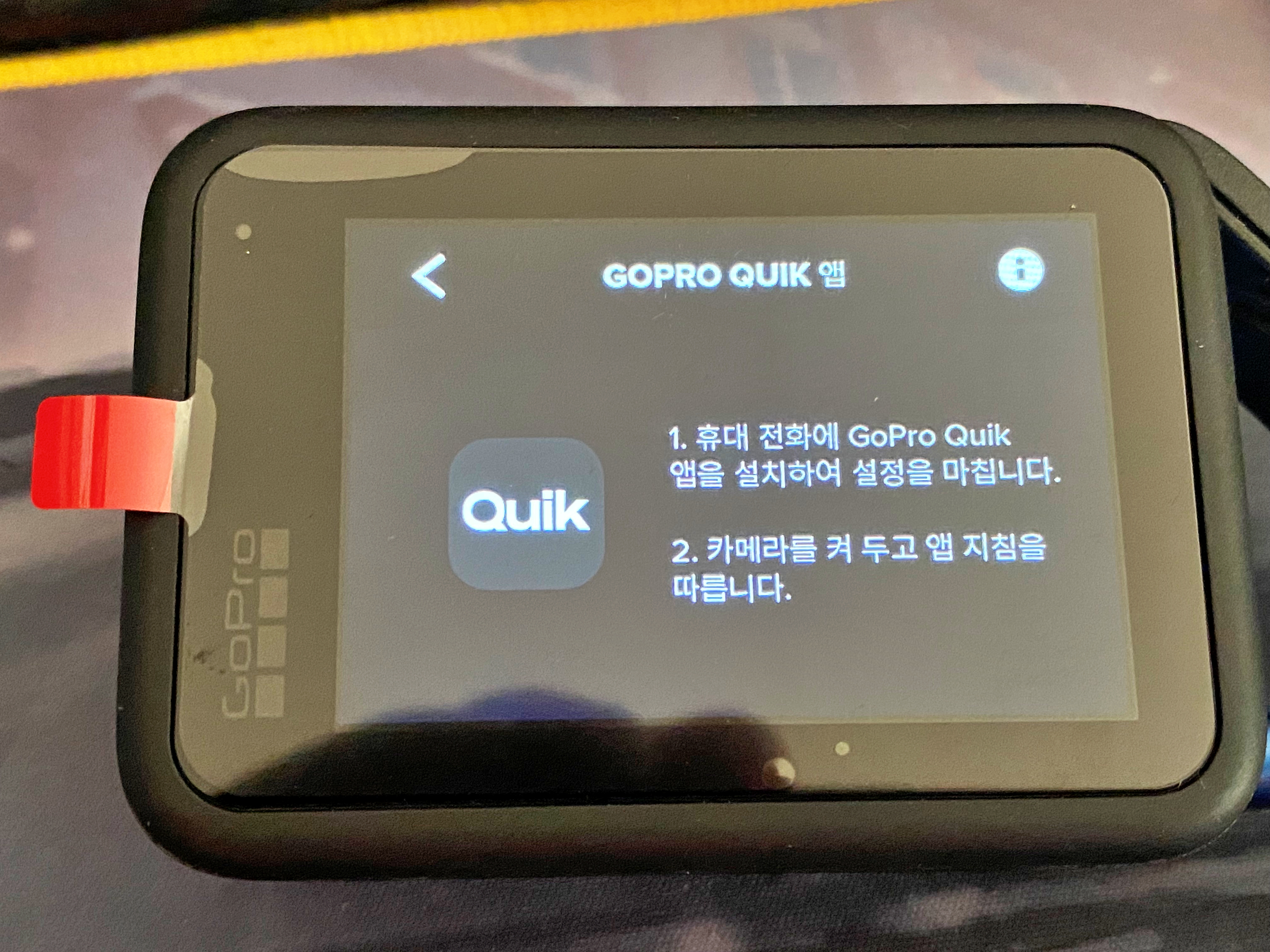대충 그림만 봐도 알 수 있지요. 자세한 설명서는 GoPro Quik 앱을 설치하여 확인하면 됩니다. 정품인증이나 업데이트 역시 해당 앱을 설치한 뒤 카메라와 무선으로 연결되어 처리됩니다.