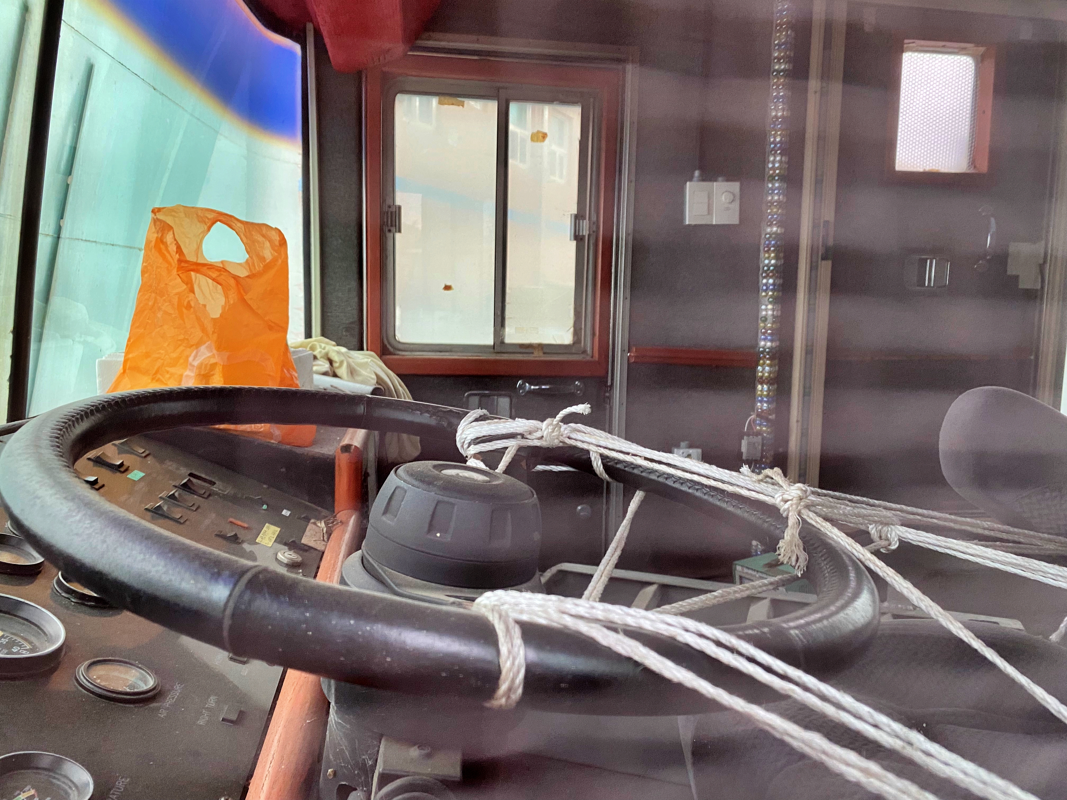 핸들은 노끈으로 묶여있었고, 차량 내부엔 잡동사니가 가득했습니다.