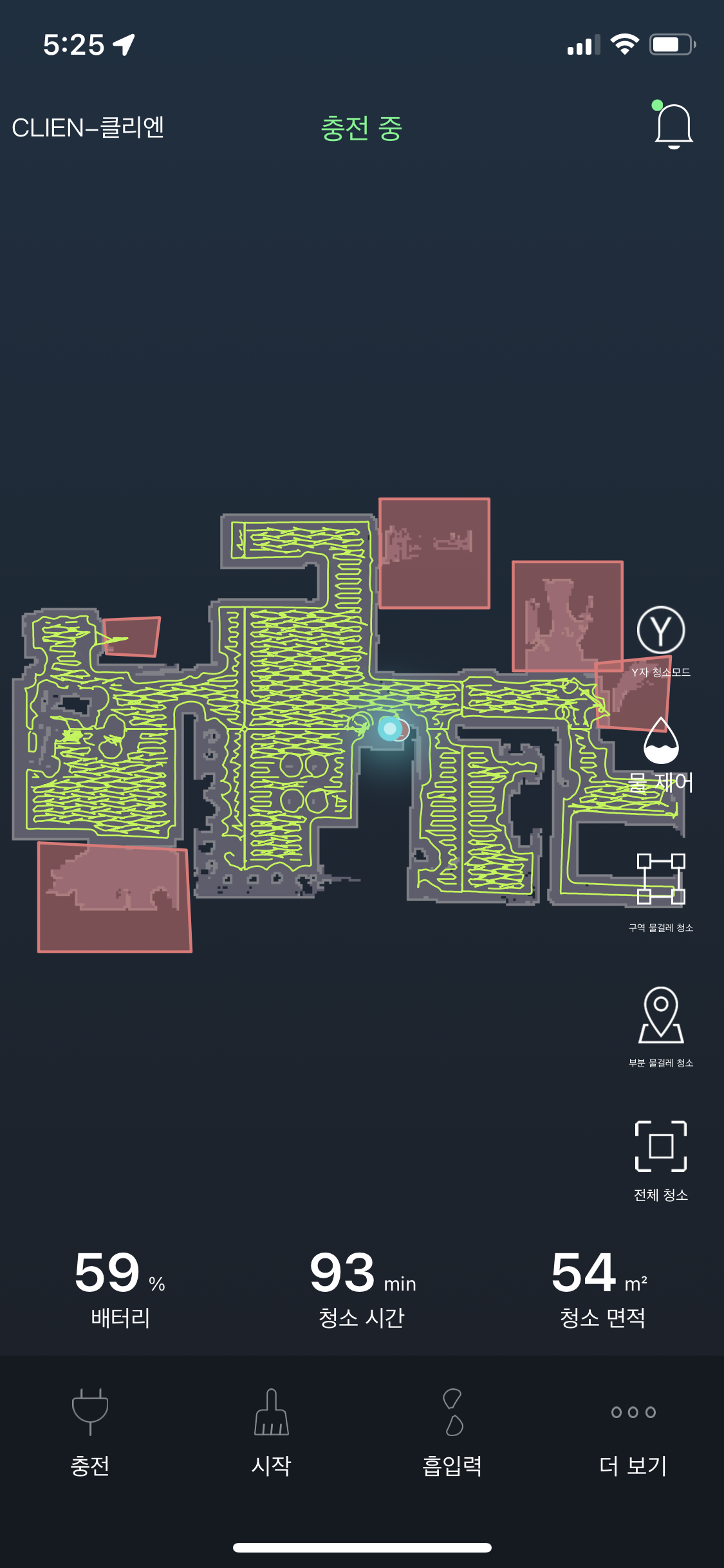 클리엔 로봇청소기가 가동중인 모습입니다.