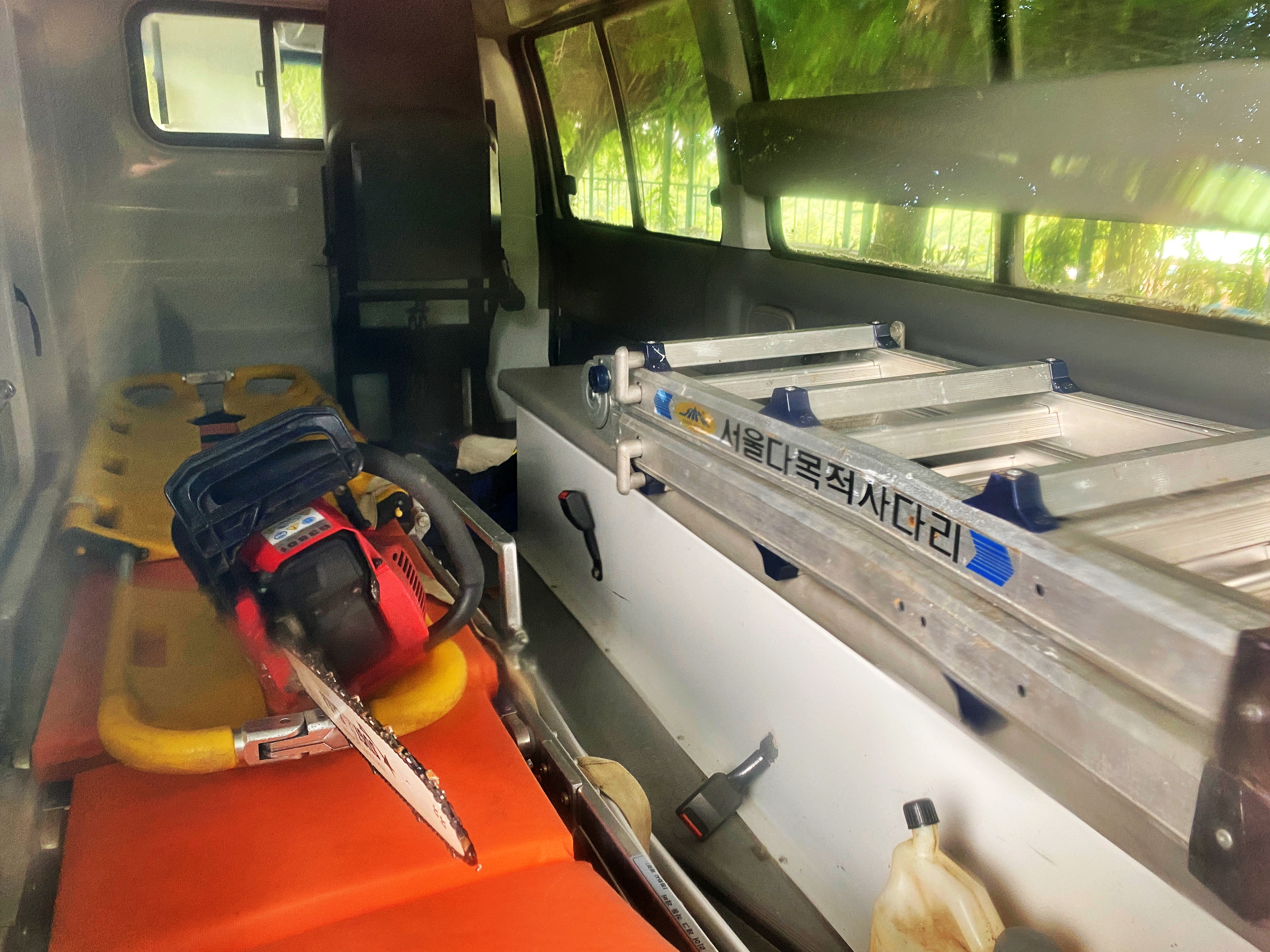 특수응급구조차라는 문구가 있고 차량 내부를 볼 수 있기에 들여다보았는데..