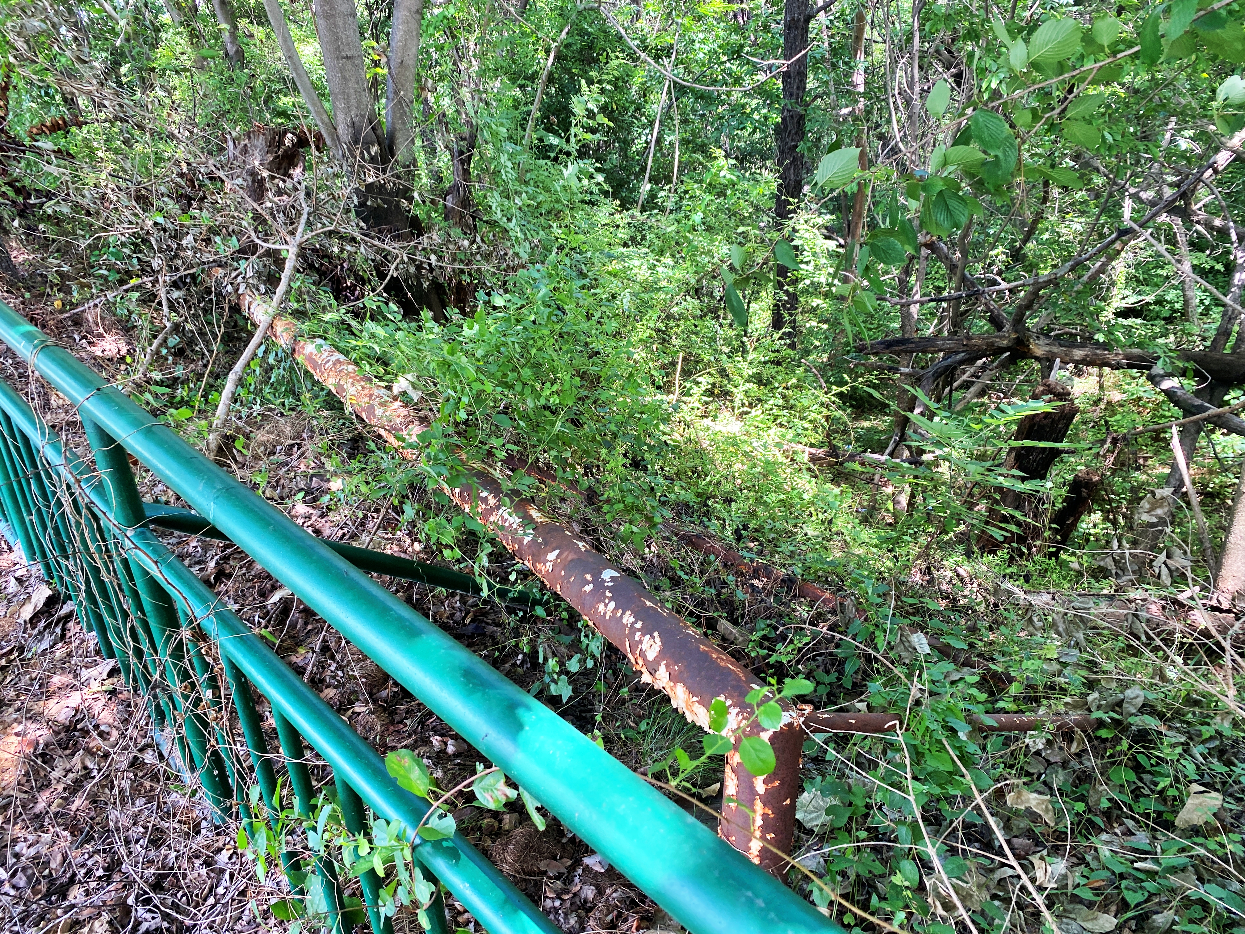 나름 산 꼭대기에 있어 광양 시내가 한눈에 보이는 전망을 가졌습니다만, 이런 부분들이 매우 눈에 띄어 아쉽기만 하네요. 현장사무실 구석에는 사용하지 않은 공사자재들의 모습도 보입니다. 그럭저럭 지금보다는 잘 굴러가던 시절인 10년 전 로드뷰를 보니 그 당시에도 학생들의 출입을 통제하는 시설의 모습은 볼 수 없습니다. 다만 휀스나 가림막이라도 설치했으면 좋았을 텐데 말이죠.