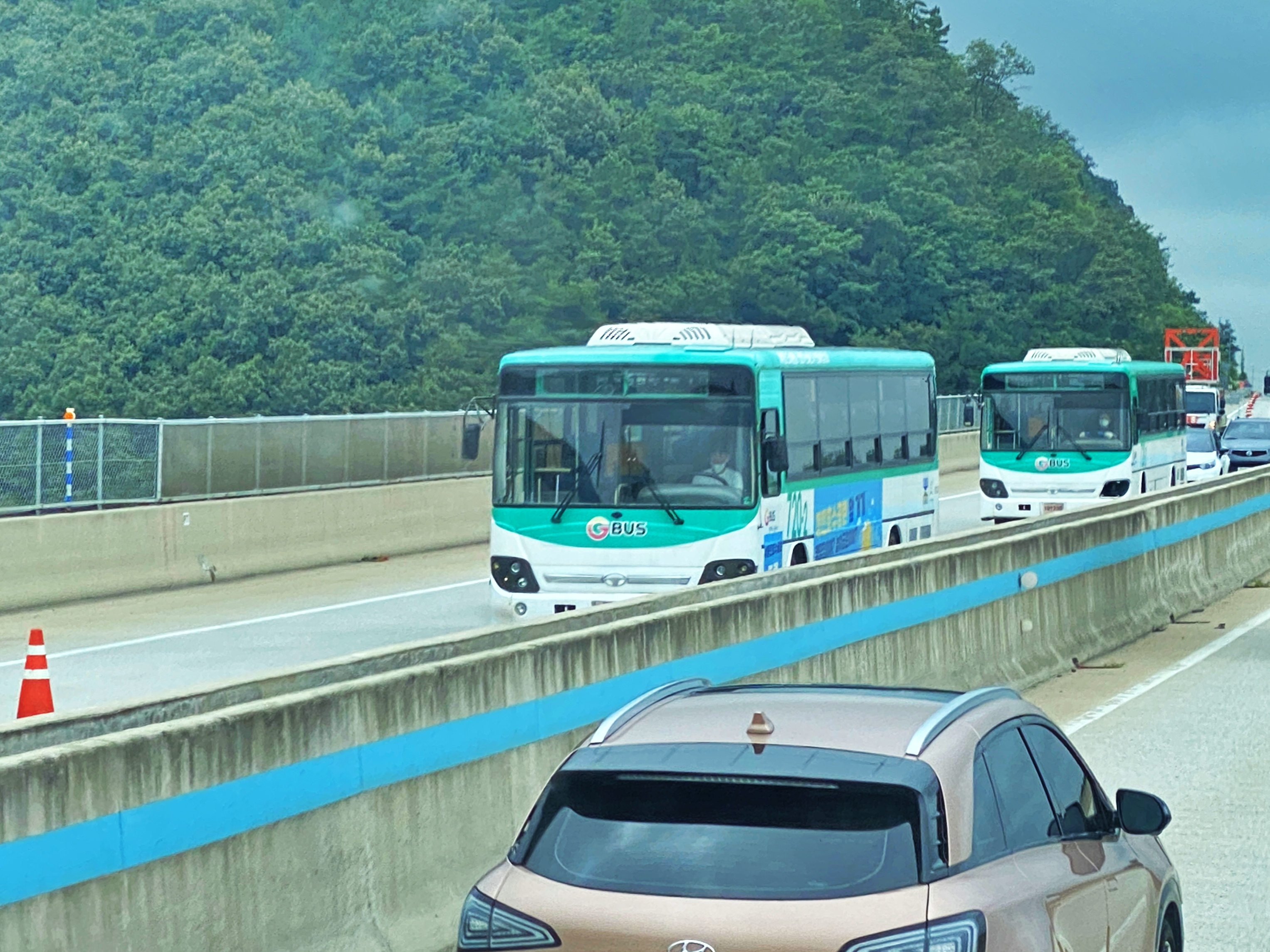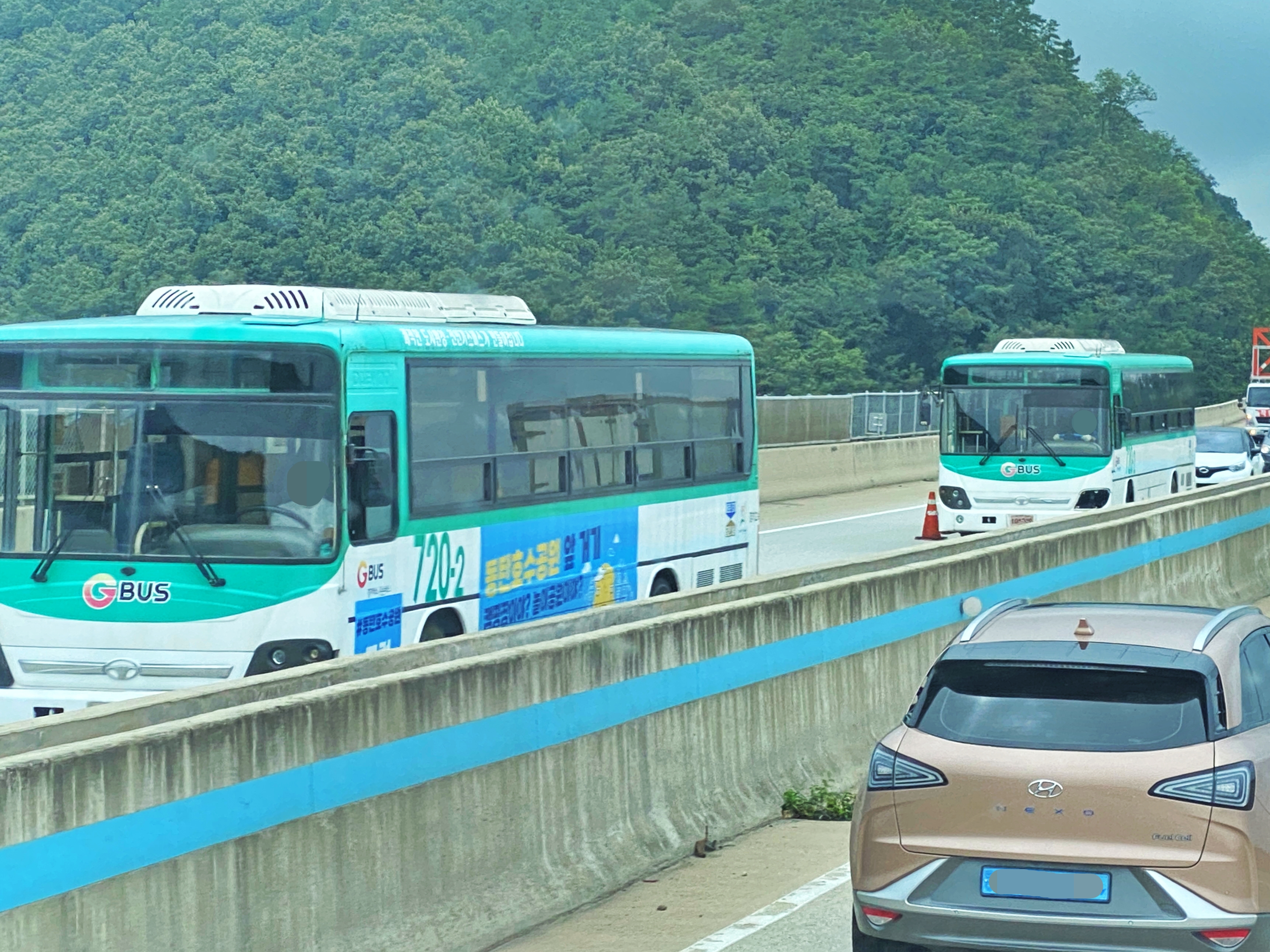 뒤 따라오는 버스는 좌측 헤드램프가 없네요. 그럼에도 큰 위화감이 없어 보입니다.