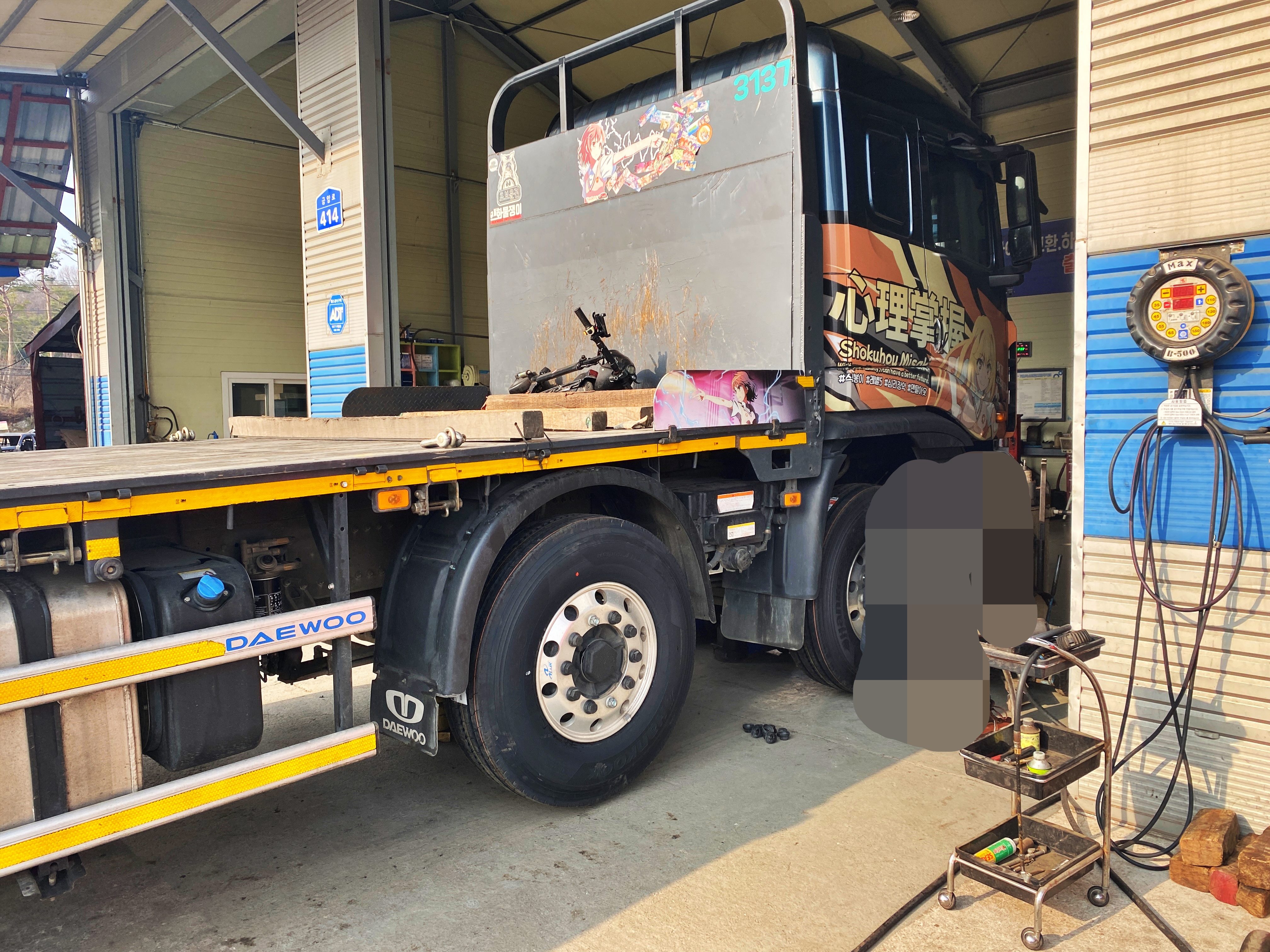 좌측의 4축 타이어 2본 역시 탈거된 타이어로 교체했습니다.