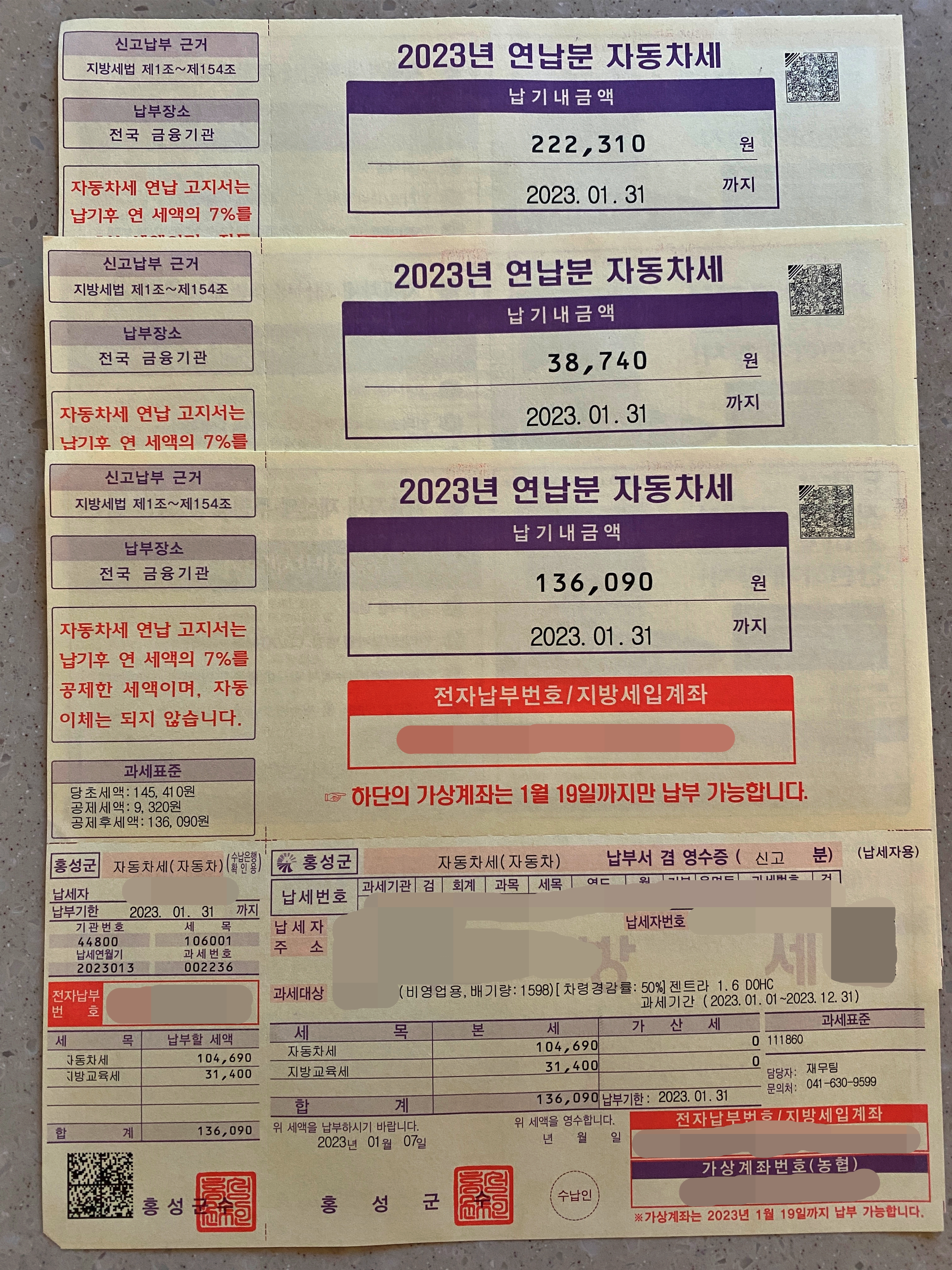 일단 연납 신청이 된 차량이 세 대라 세장이 날아왔네요.