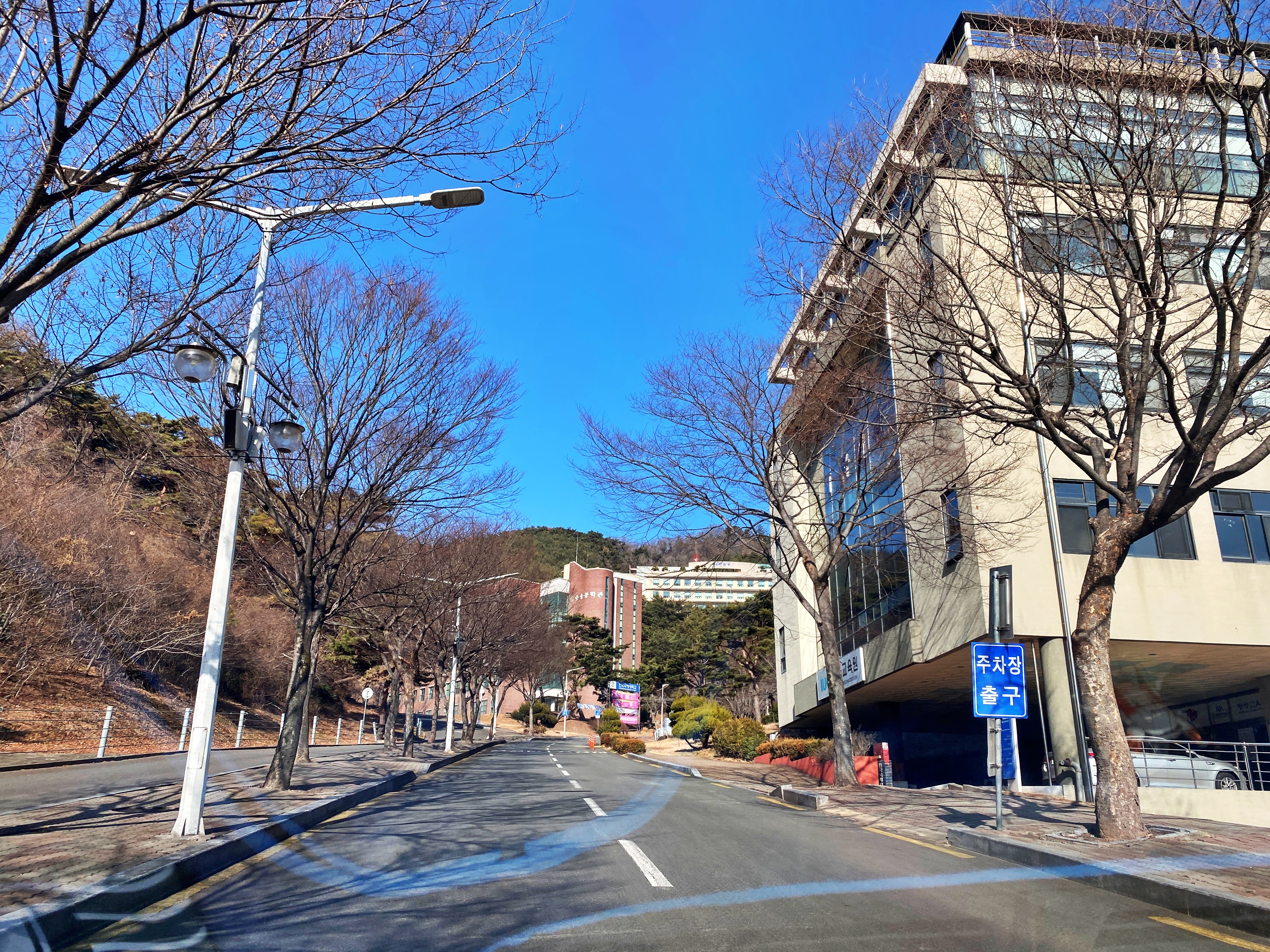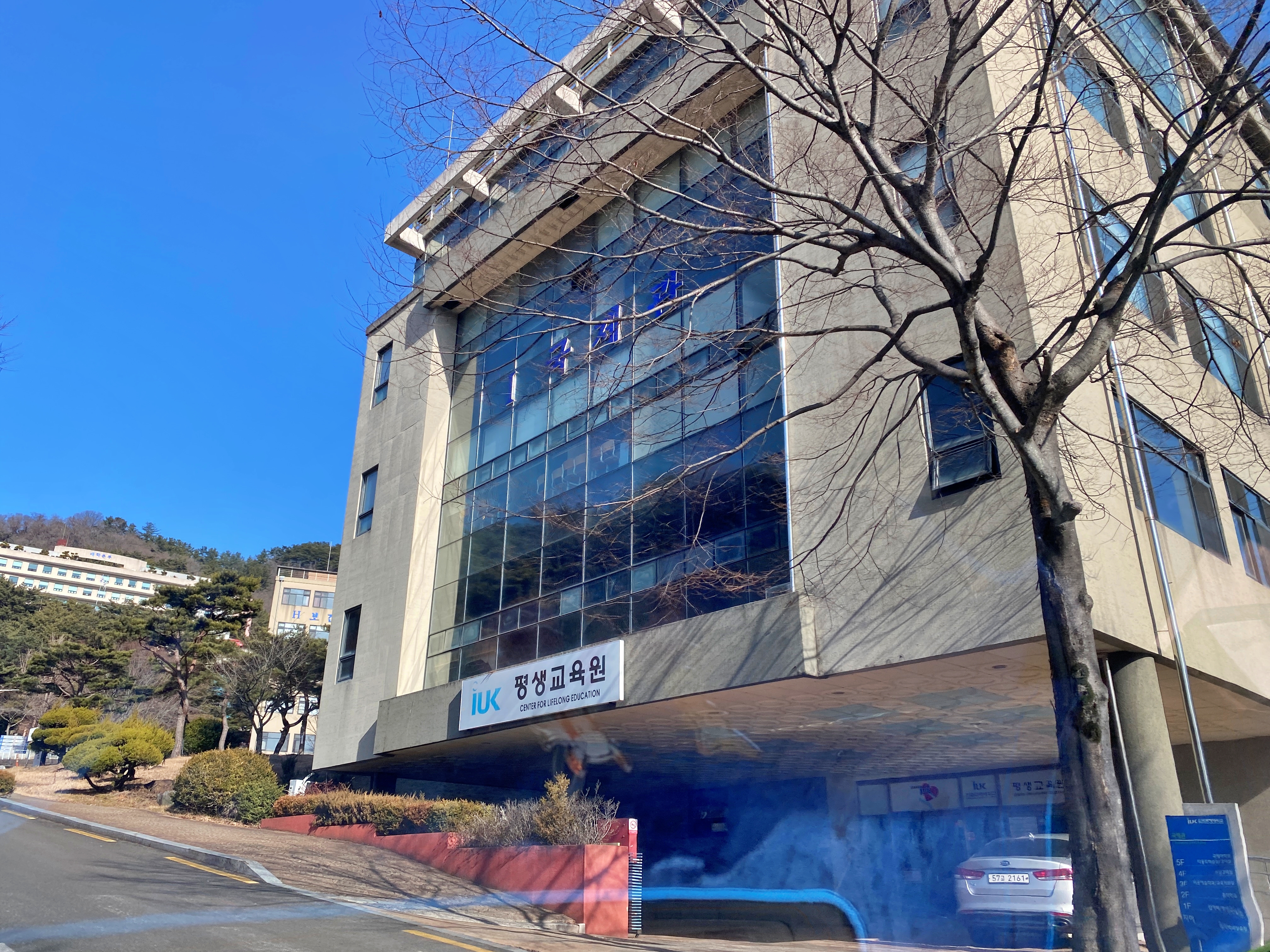 들어오자마자 보이는 평생교육원과 국제관 건물.