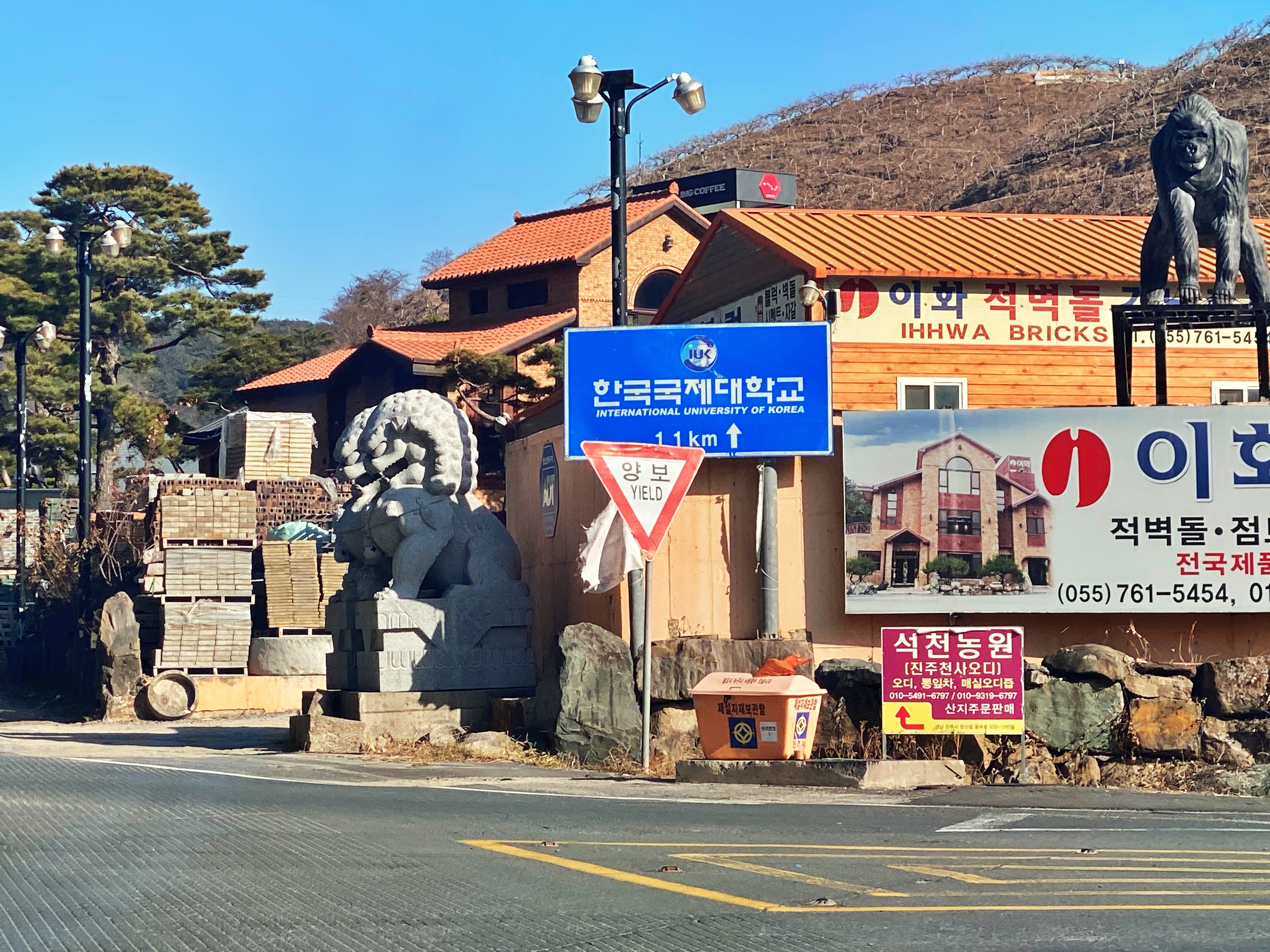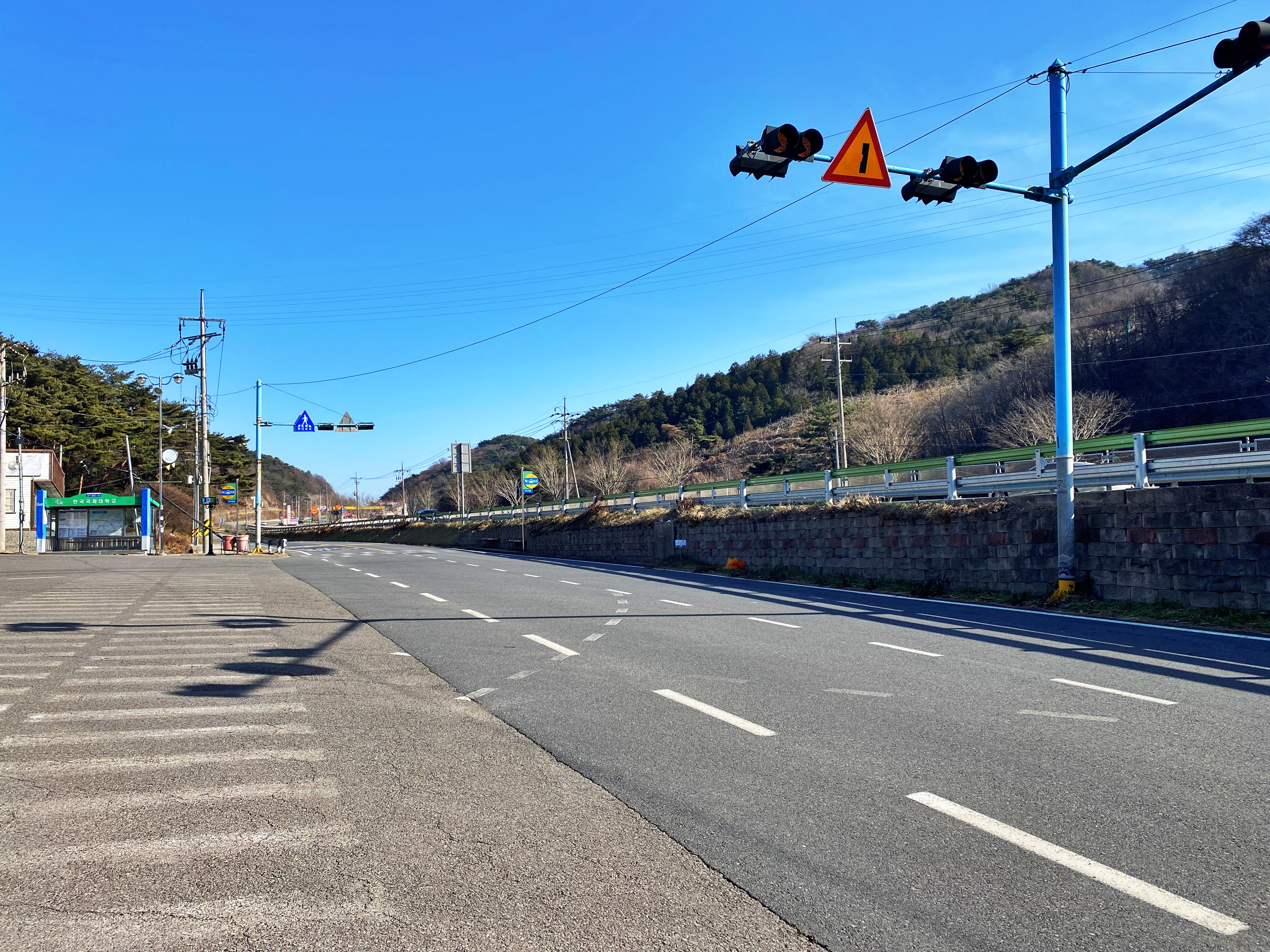 그저 그런 시골 풍경이 이어지던 중 한국국제대학교의 교문이 보입니다.