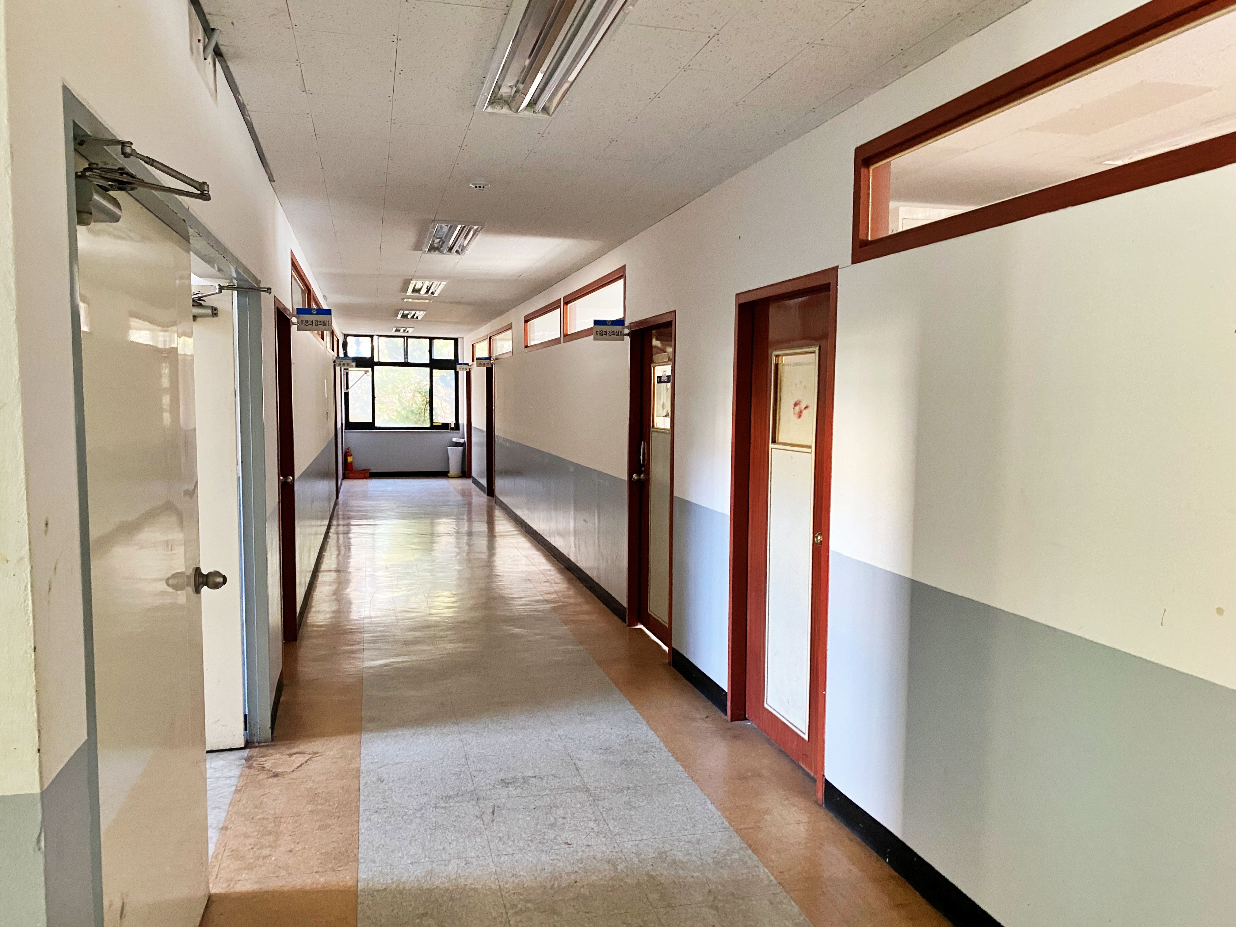 조금 오래된 느낌은 있지만 그럭저럭 깔끔하게 관리되고 있었습니다. 어학원은 5층에 소재해 있고, 평생교육원은 1층에 소재해 있습니다. 그 외에는 일부 예체능 계열 학과의 실습실과 교양학부 사무실이 존재하는 건물이네요.