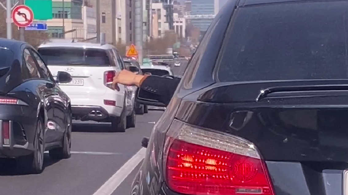 역시나 예상대로 담배꽁초를 차량 밖으로 집어 던집니다.