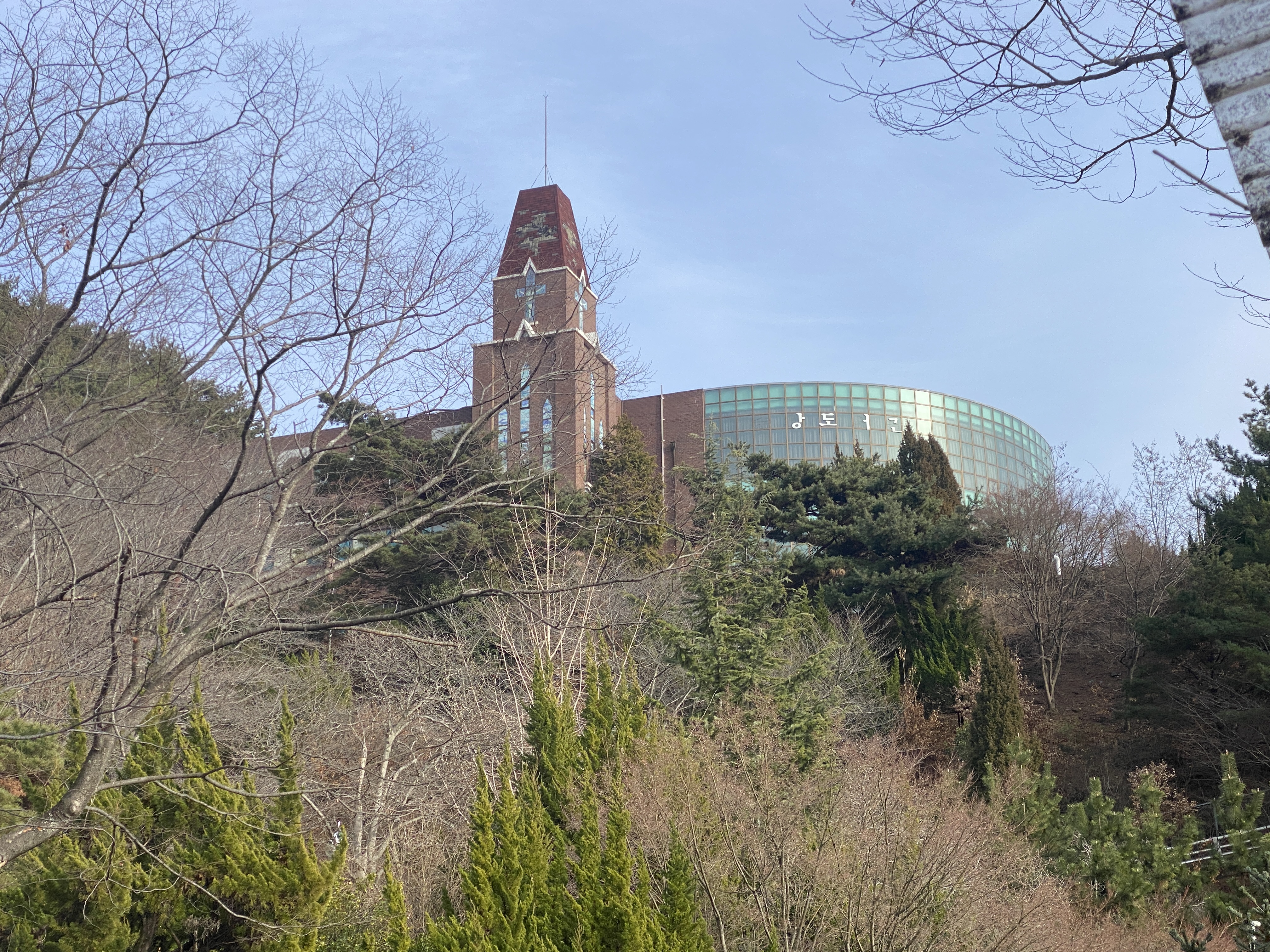 저 위에 교회처럼 보이는 건물이 있습니다. 중앙도서관이라고 합니다.