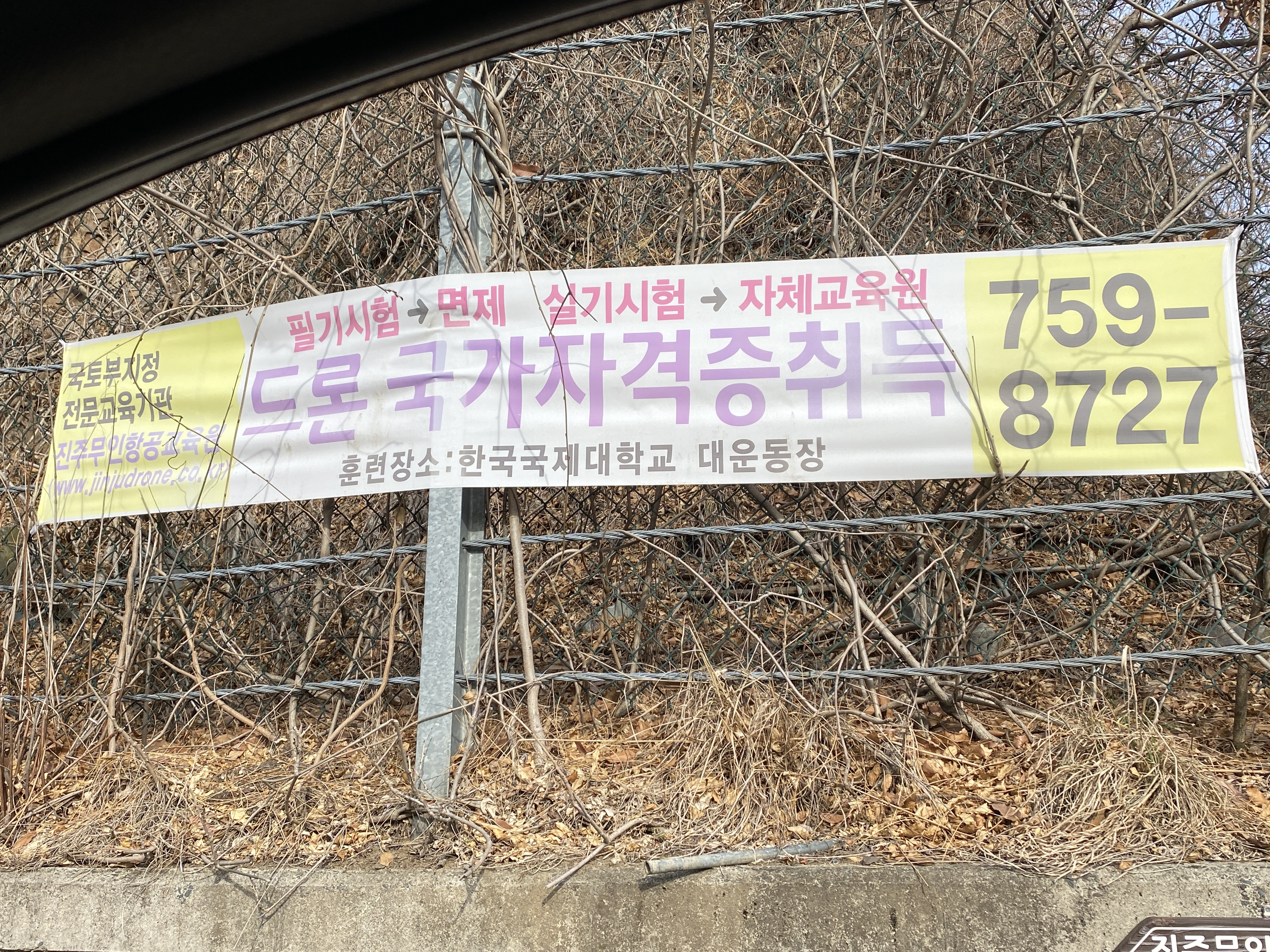 정확한 정보는 아니지만 드론 자격증을 취득하기 위한 교육시간을 채우려면 강사 자격증을 가진 사람이 참관하고 있는 상태에서 훈련을 받아야 한다고 알고 있습니다. 교육비도 드론의 배터리가 비싸서 꽤 비싼 편이라고 하고요. 그럼에도 드론 보급이 늘어나며 전국 곳곳에 이런 교육장이 생기고 있습니다.