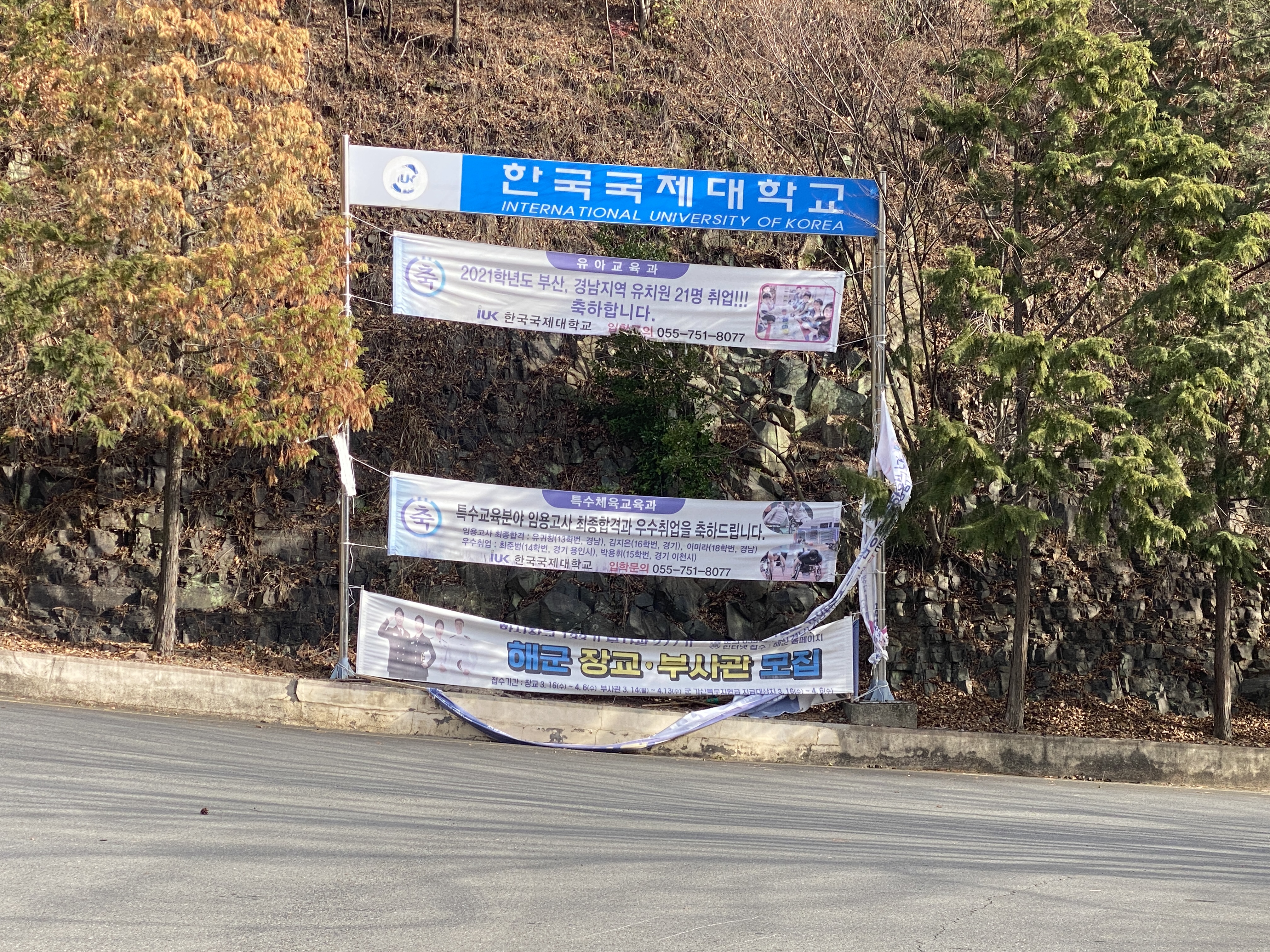 2023년인데 2021학년도 취업과 관련된 현수막이 아직도 남아있었고, 부사관 모집 현수막 역시 1년 가까이 된 것으로 보입니다.