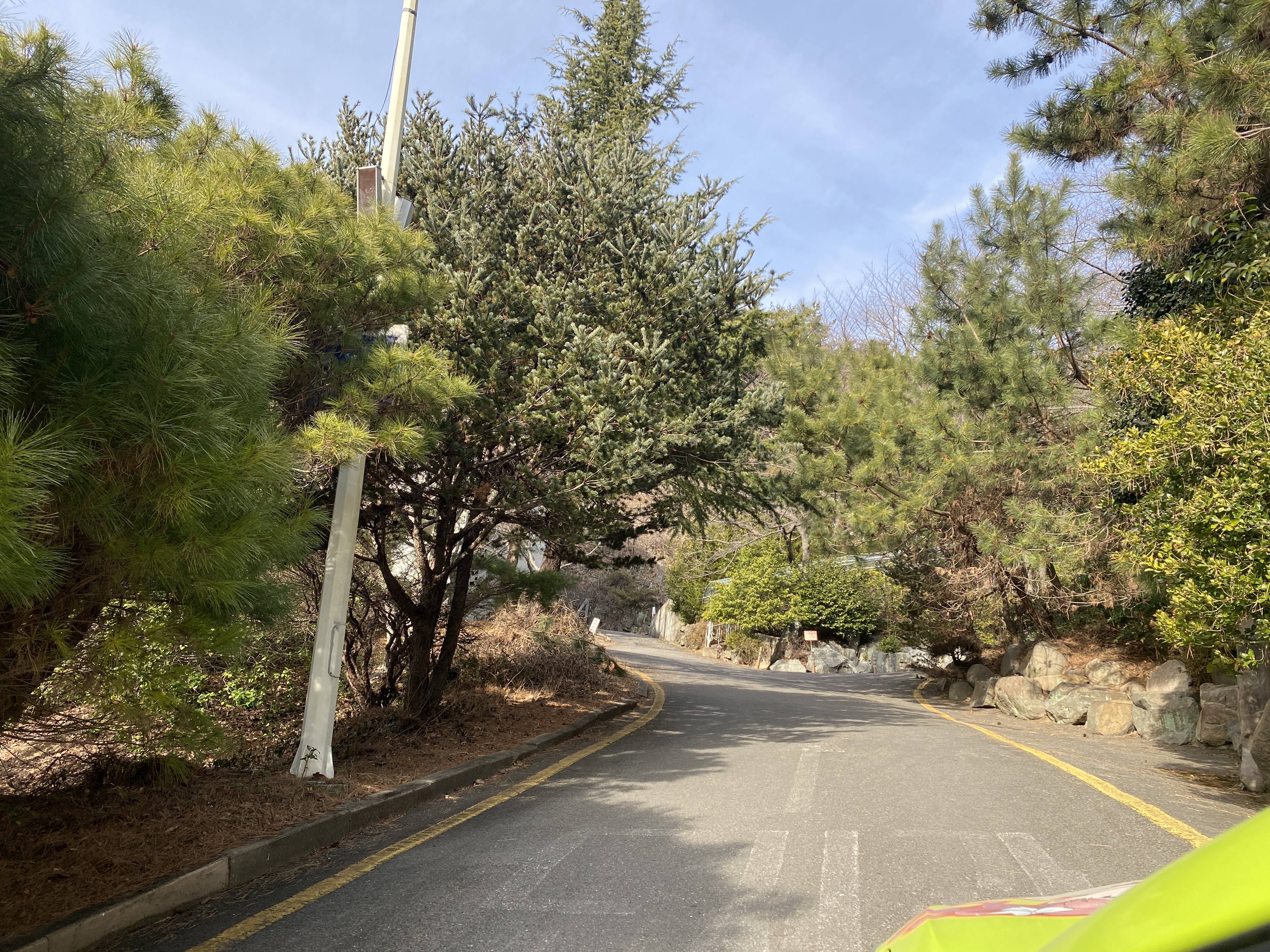 도서관 가기 참 어렵습니다. 이전에 봤던 등산로처럼 언덕을 가로질러 넘어가는 계단이 있긴 한데 차량은 한참 더 돌아서 올라가야 합니다.