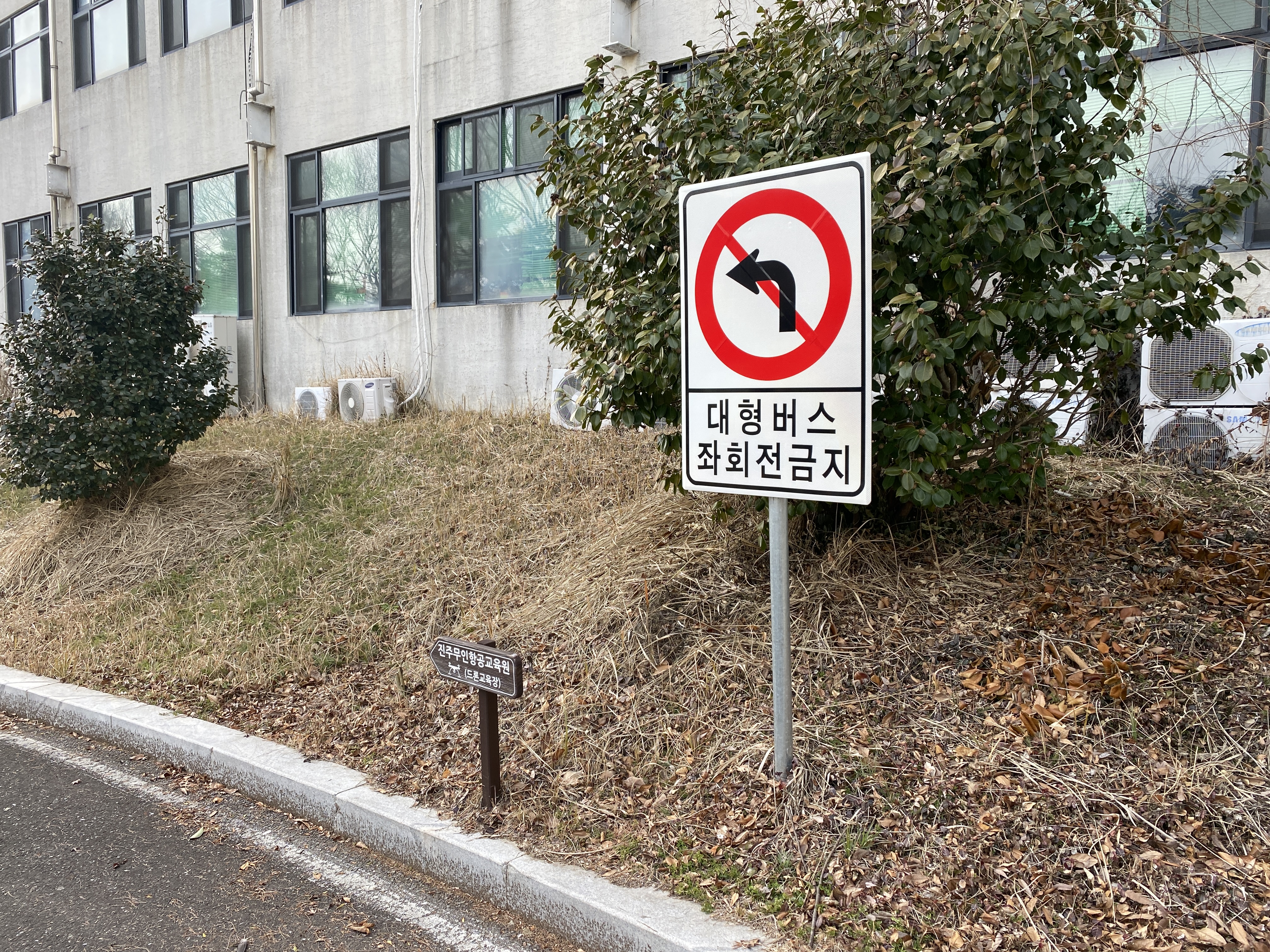 대형버스 좌회전 금지 표지판이 있어 표지판이 가리키는 방향으로 고개를 돌려봅니다.