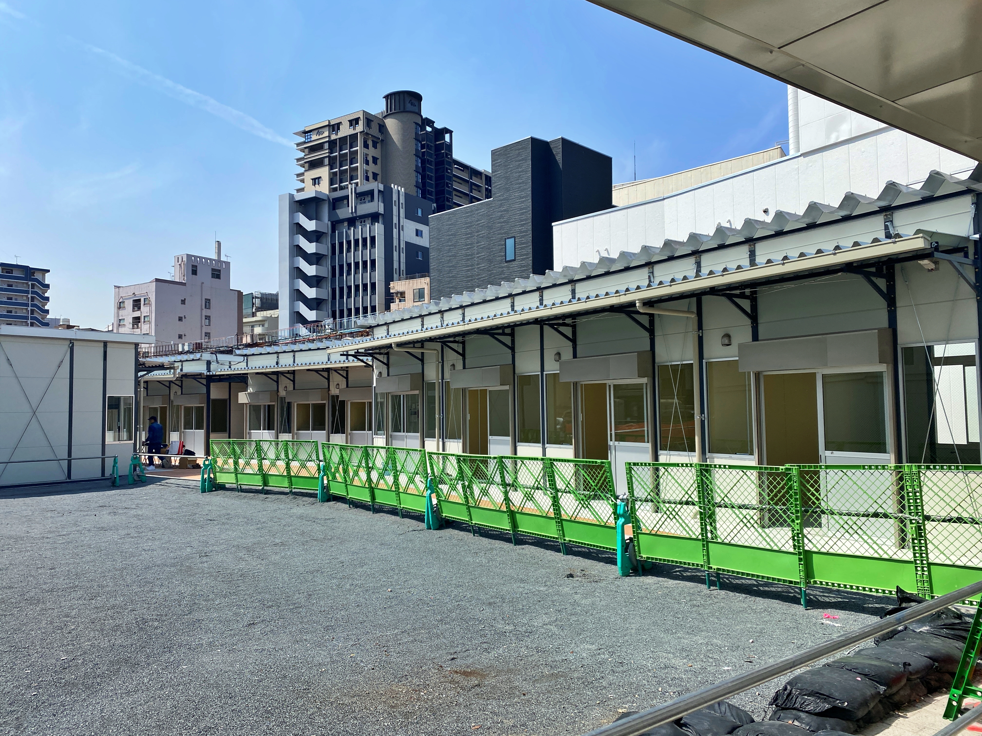 미용실 옆으로 낡은 맨션 건물이 있었는데 철거되었습니다. 철거 후 흉한 외벽을 가리기 위해 외벽공사만 상대적으로 최근에 진행한 느낌이네요.